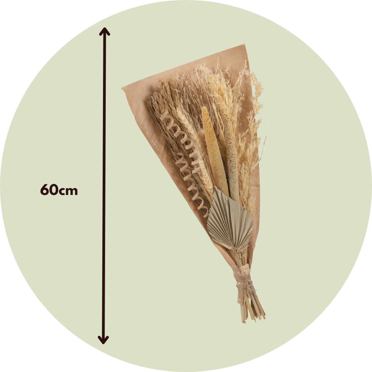Do not place the bouquet in direct sunlight and avoid damp areas. This keeps the flowers at their best. This way you can enjoy these dried flowers for a long time!