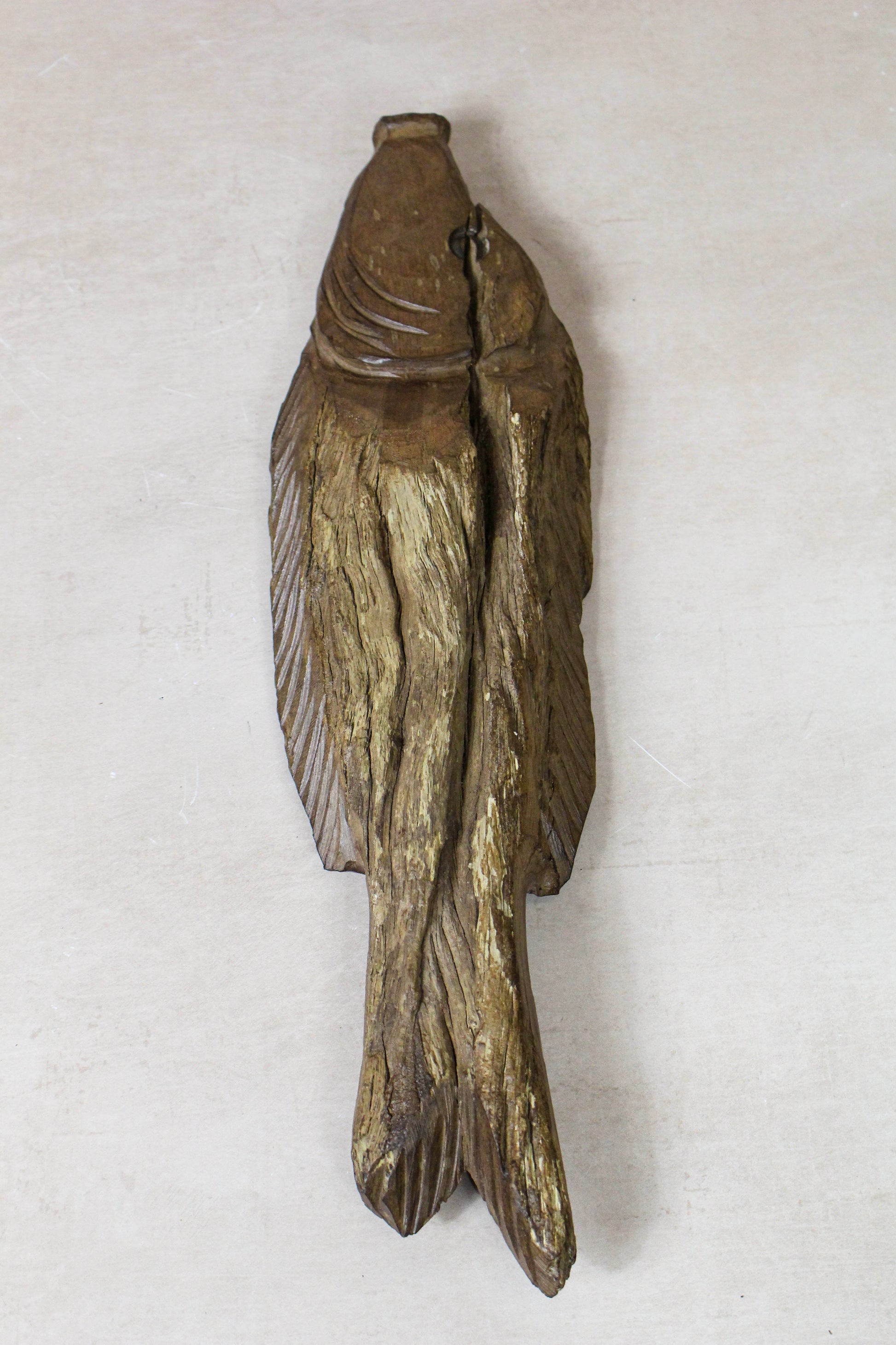 Hand carved drift wood fish wall sculpture. Non of our fish are alike and each one is completely unique and bespoke. Perfect for hanging on your wall. Idea: Try hanging several fish in a group on a large wall for an amazing piece of wall art or a single fish in your bathroom.