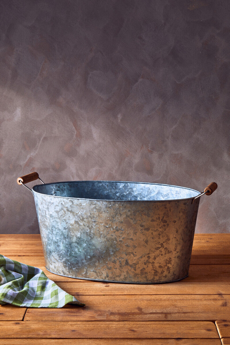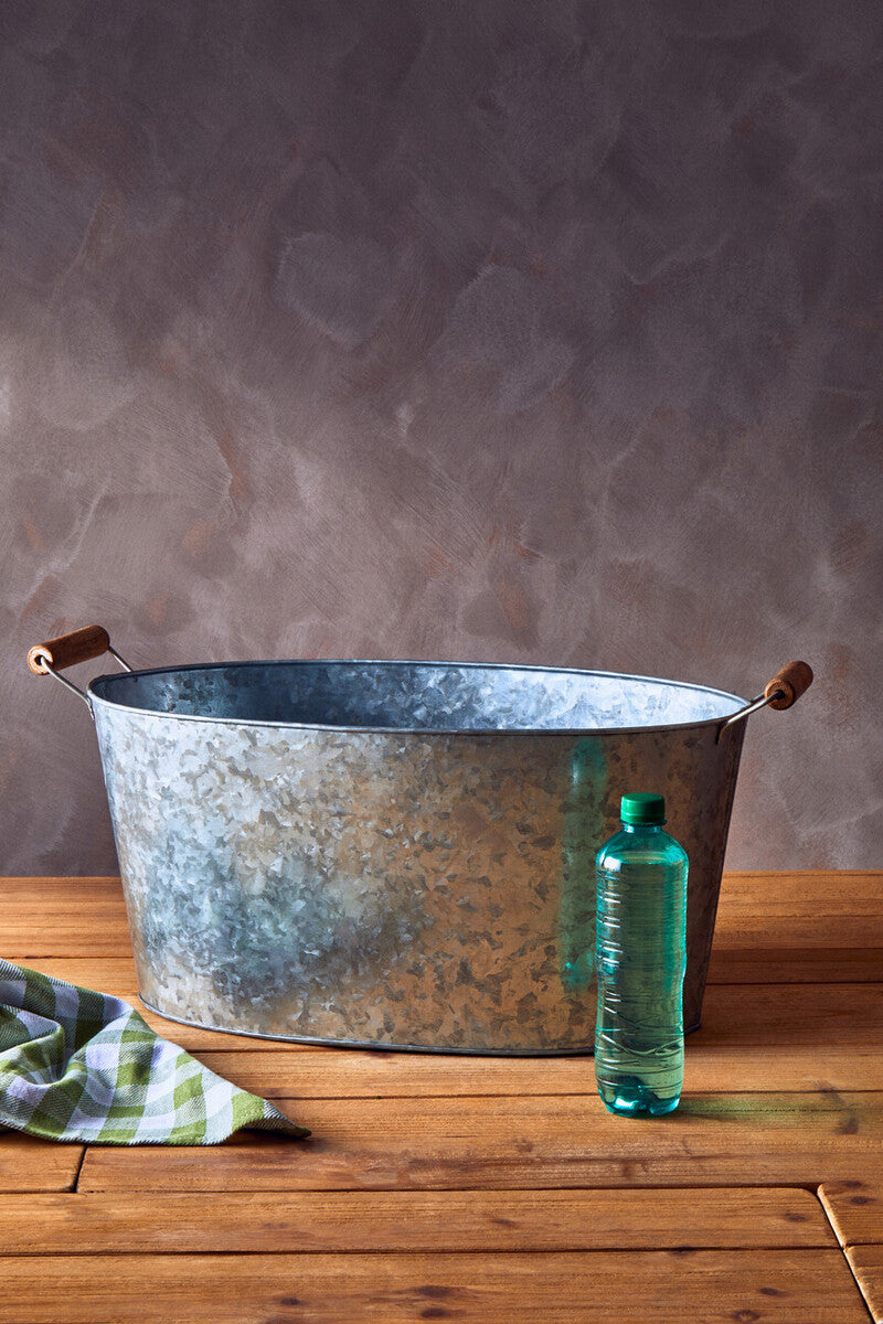 Make a statement with the Drummond Large Boat-Shaped Galvanised Steel Tray, a striking accent that combines generous capacity with graceful lines. The elongated silhouette and softly raised edges keep items secure as you serve or style. Sturdy side handles provide confident carrying from kitchen to garden and beyond.