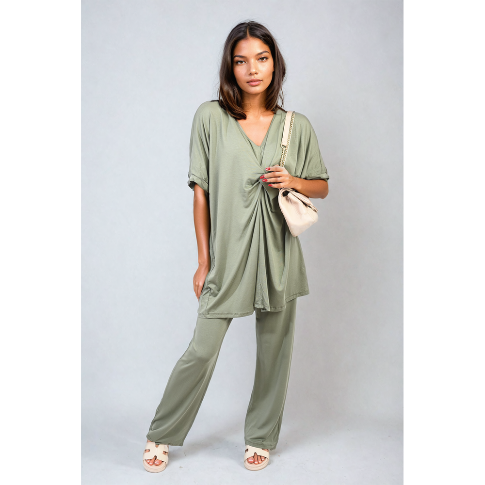 Effortless Elegance: Tiana Twist Front Plunge Neckline Top and Trouser Co-ord Set