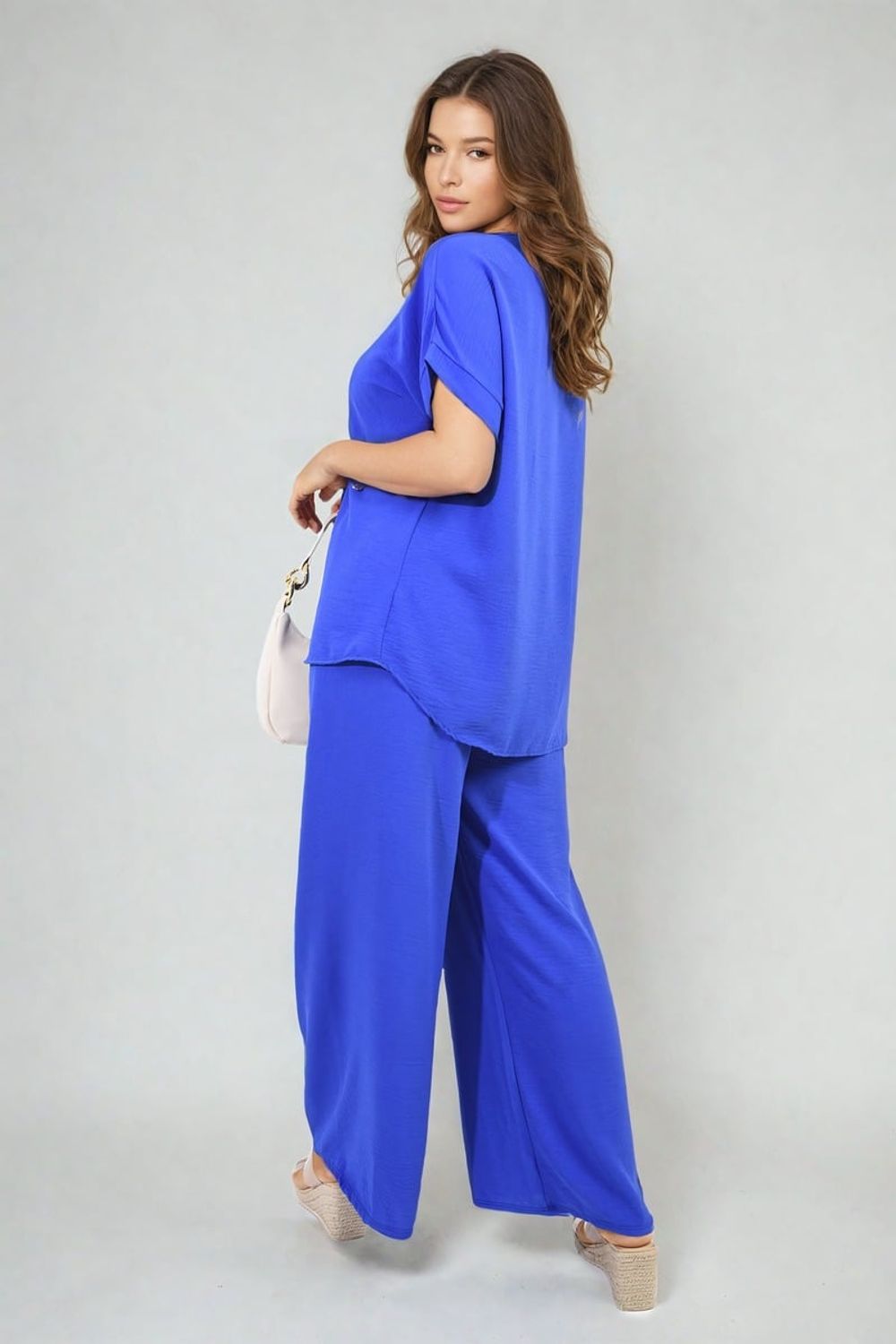 Effortlessly Chic V-Neck Top & Wide Leg Trousers Set - Premium Quality - Various Sizes & Colors