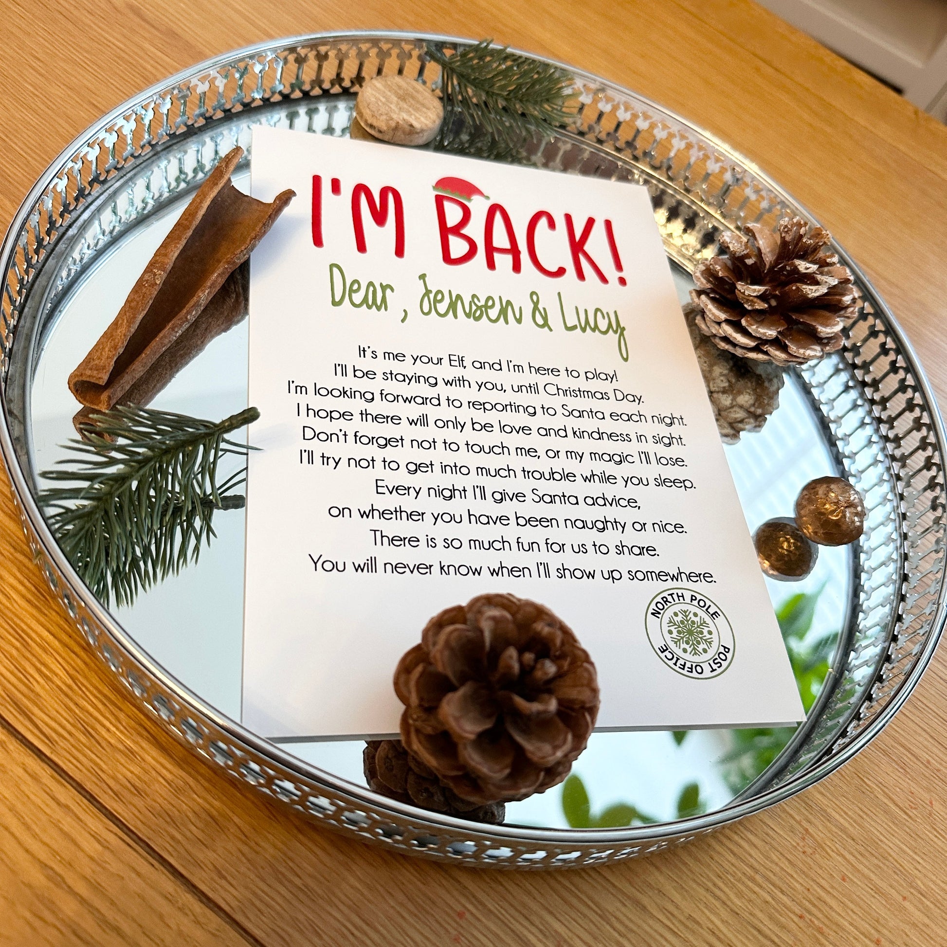 Elf Hello I'm Back & Goodbye Personalised Printed Letters Christmas Seasonal Wall Home Decor Print