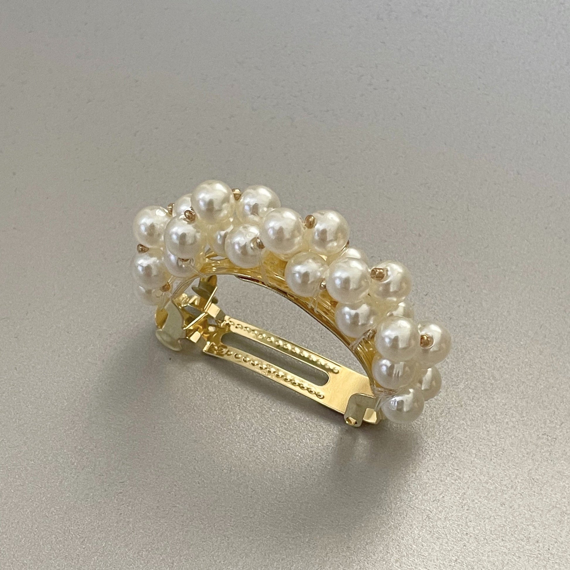 The Emmie ponytail clip features a beautiful arched array of pearls that will give you an elegant look with any outfit.