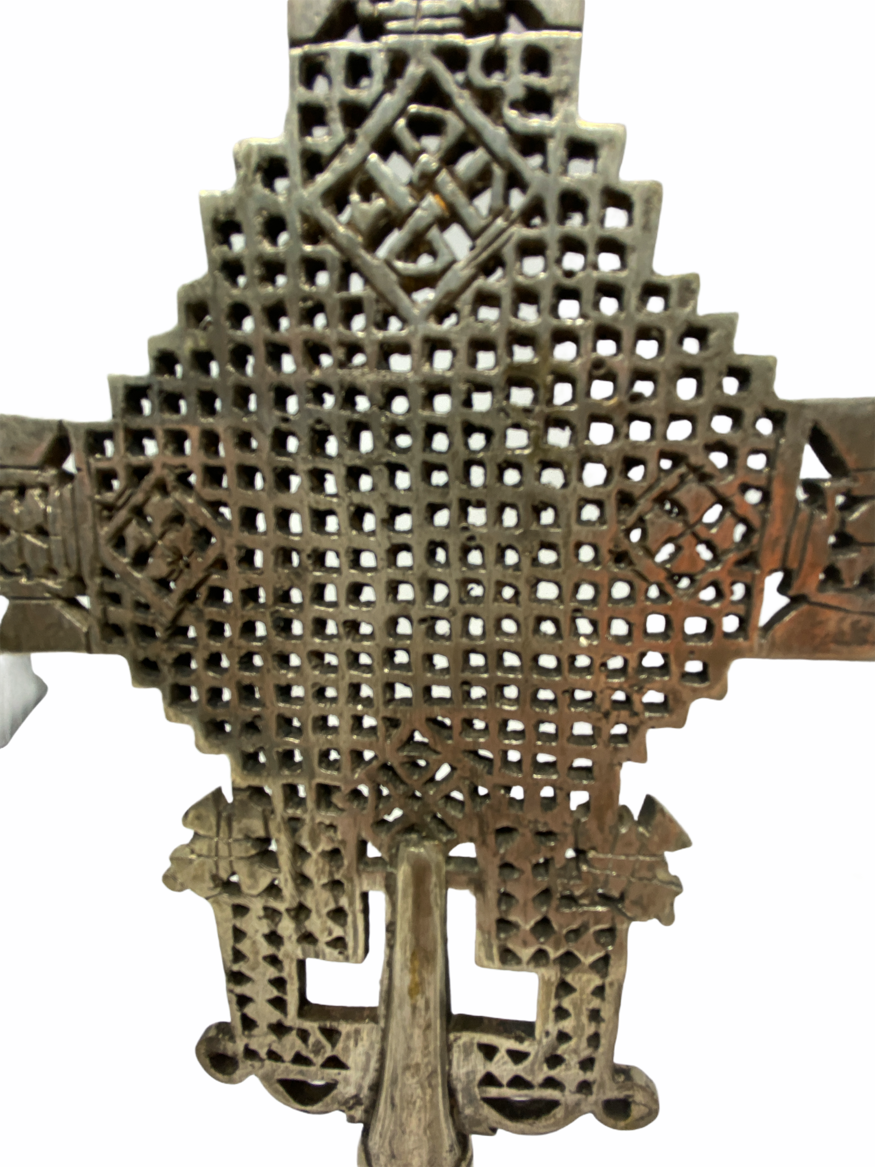Ethiopia is home to one of the oldest continuous Christian traditions in the world, and Ethiopian silversmiths produce religious jewellery as an expression of that tradition. Star of David symbols are evident in design and emphasize the relationship of Christian Ethiopians to Israel, King Solomon and the Queen of Sheba. These individual Coptic crosses are cast and made in various styles, designs, and sizes. They can be hand-cut from various metal: silver, iron, gold, and brass--and cast using the lost wax method. Some Ethiopian crosses are made from wood, these ones are made of silver alloy. Designs are as varied as the regions they come from, and crosses are generally named after the towns or provinces where they are made. The use of these crosses is essentially religious. Crosses like these are known as processional crosses. They do have base and are carried during religious