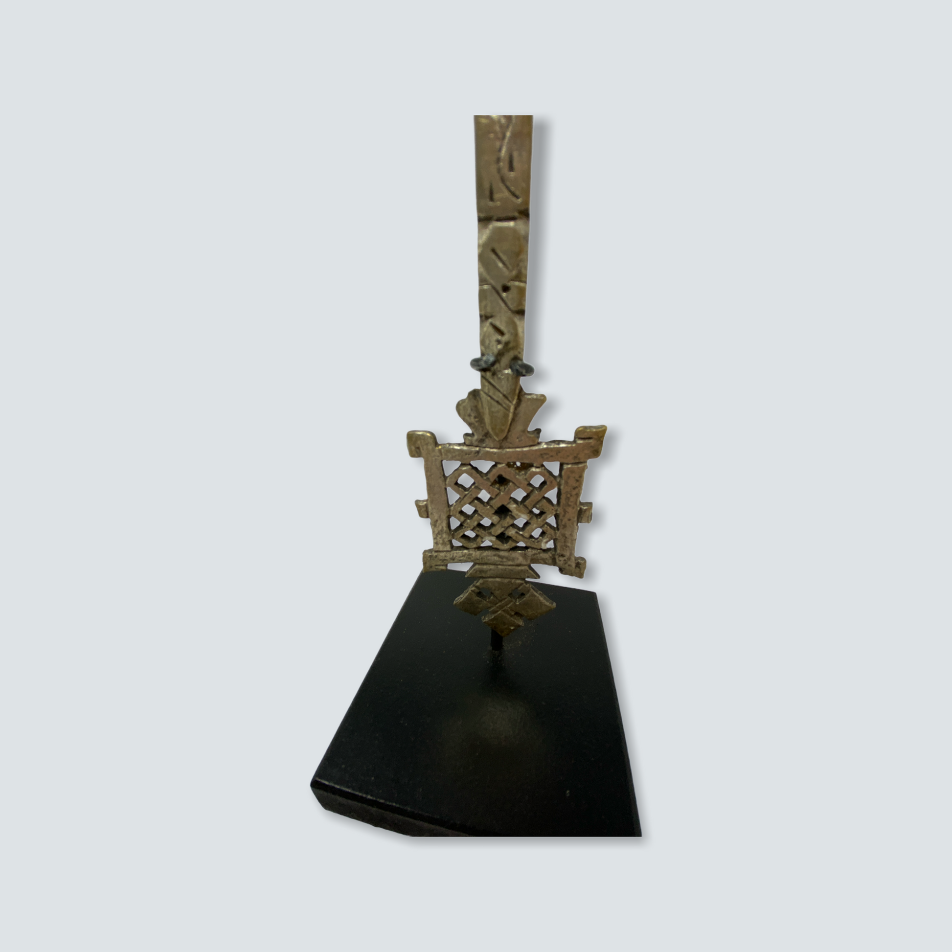 Ethiopia is home to one of the oldest continuous Christian traditions in the world, and Ethiopian silversmiths produce religious jewellery as an expression of that tradition. Star of David symbols are evident in design and emphasize the relationship of Christian Ethiopians to Israel, King Solomon and the Queen of Sheba. These individual Coptic crosses are cast and made in various styles, designs, and sizes. They can be hand-cut from various metal: silver, iron, gold, and brass--and cast using the lost wax method. Some Ethiopian crosses are made from wood, these ones are made of silver alloy. Designs are as varied as the regions they come from, and crosses are generally named after the towns or provinces where they are made. The use of these crosses is essentially religious. Crosses like these are known as processional crosses. They do have base and are carried during religious