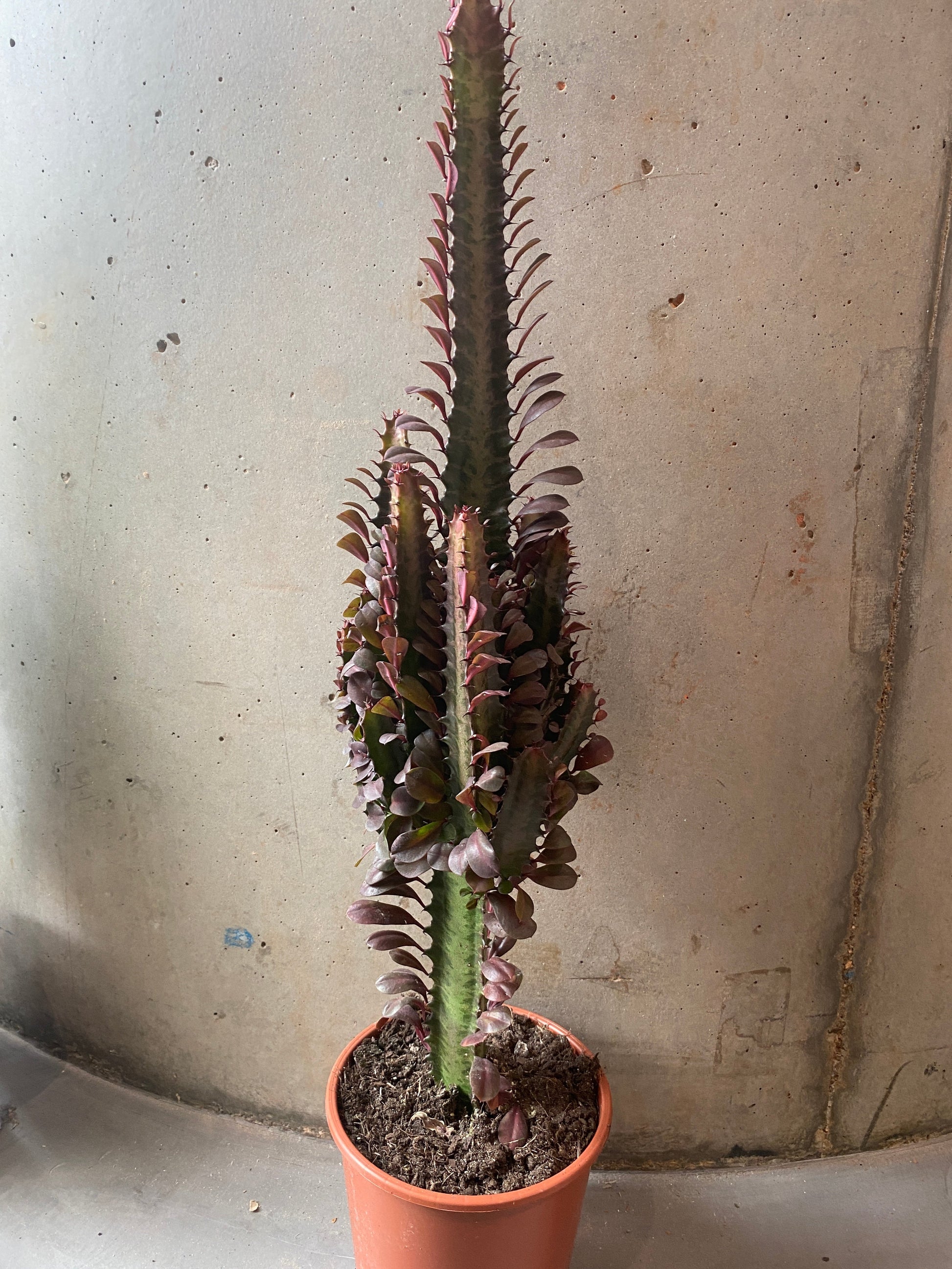 Euthorbia have some of the most beautiful shapes and forms and are well suited to dry climates which makes them super easy to care for as you do not need to water them often. They often get confused with Cactus. Cactus have spines but Euthorbias have spikes.