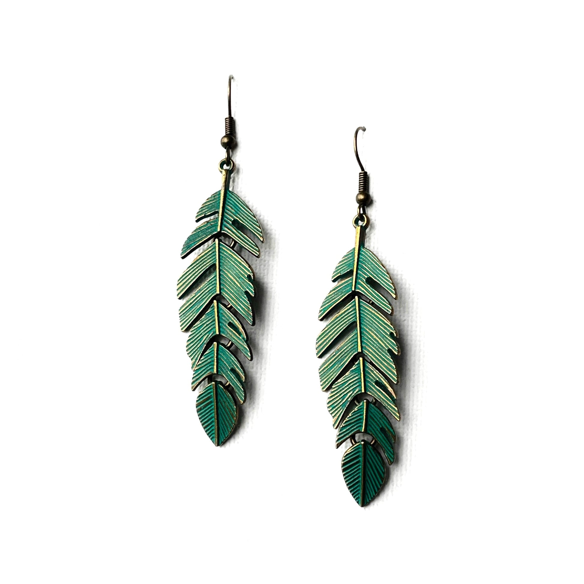 The stunning Evangelina green feather drop earrings feature intricate detailed feathers and will look stunning with any outfit.