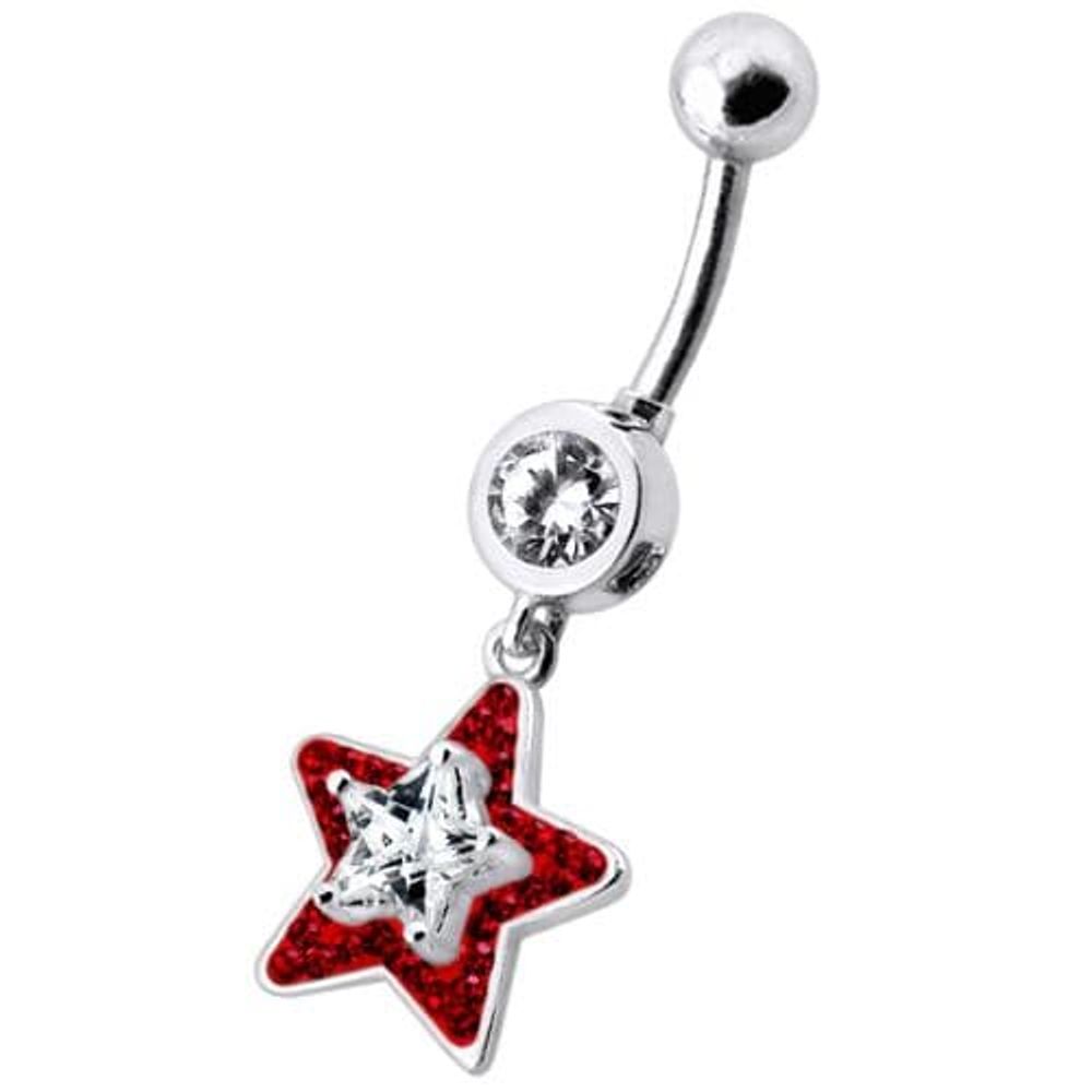 Fancy Jeweled Star Dangling Banana Bar Navel Ring