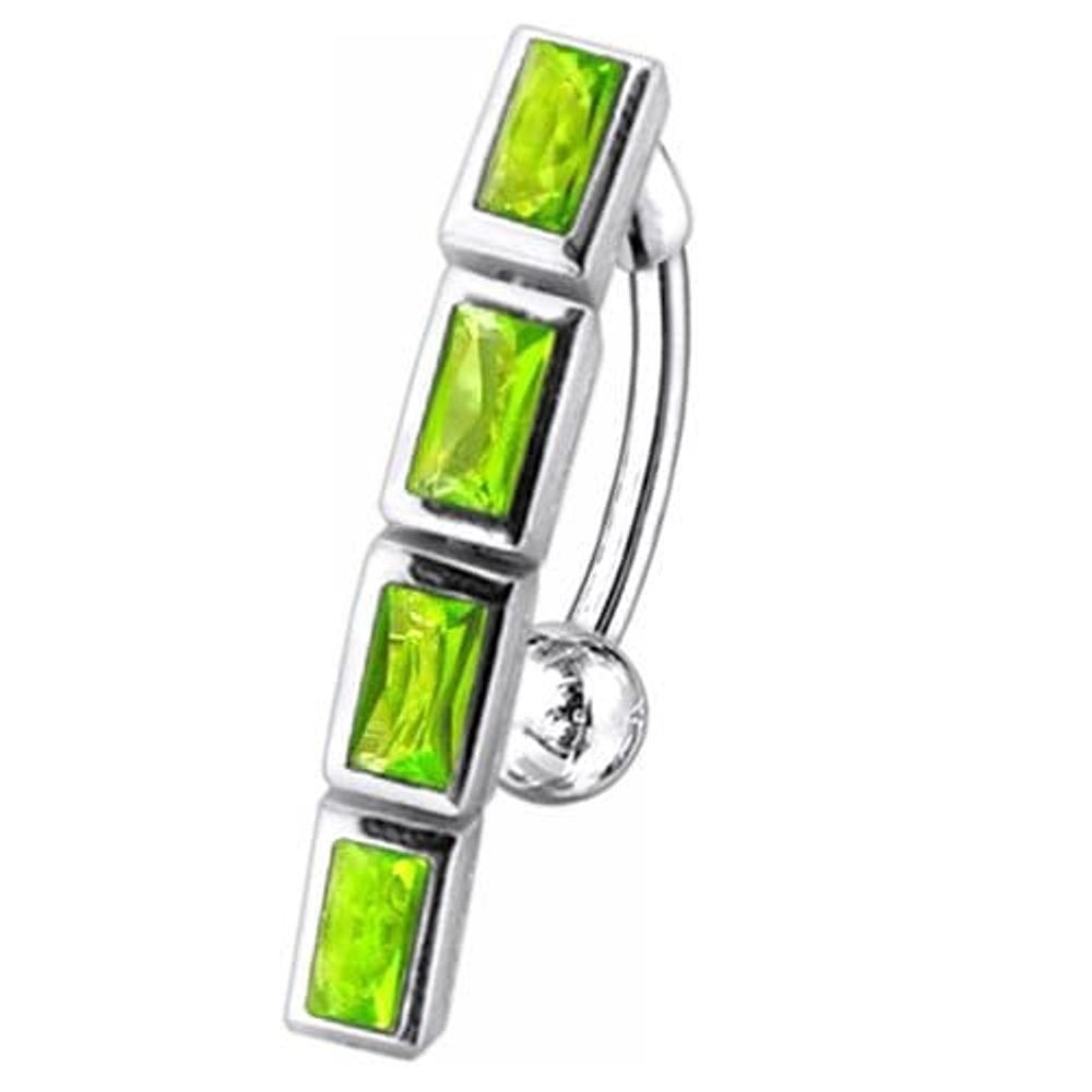 Fancy Multi Stone SS Dangling Reverse Banana Bar Belly Ring