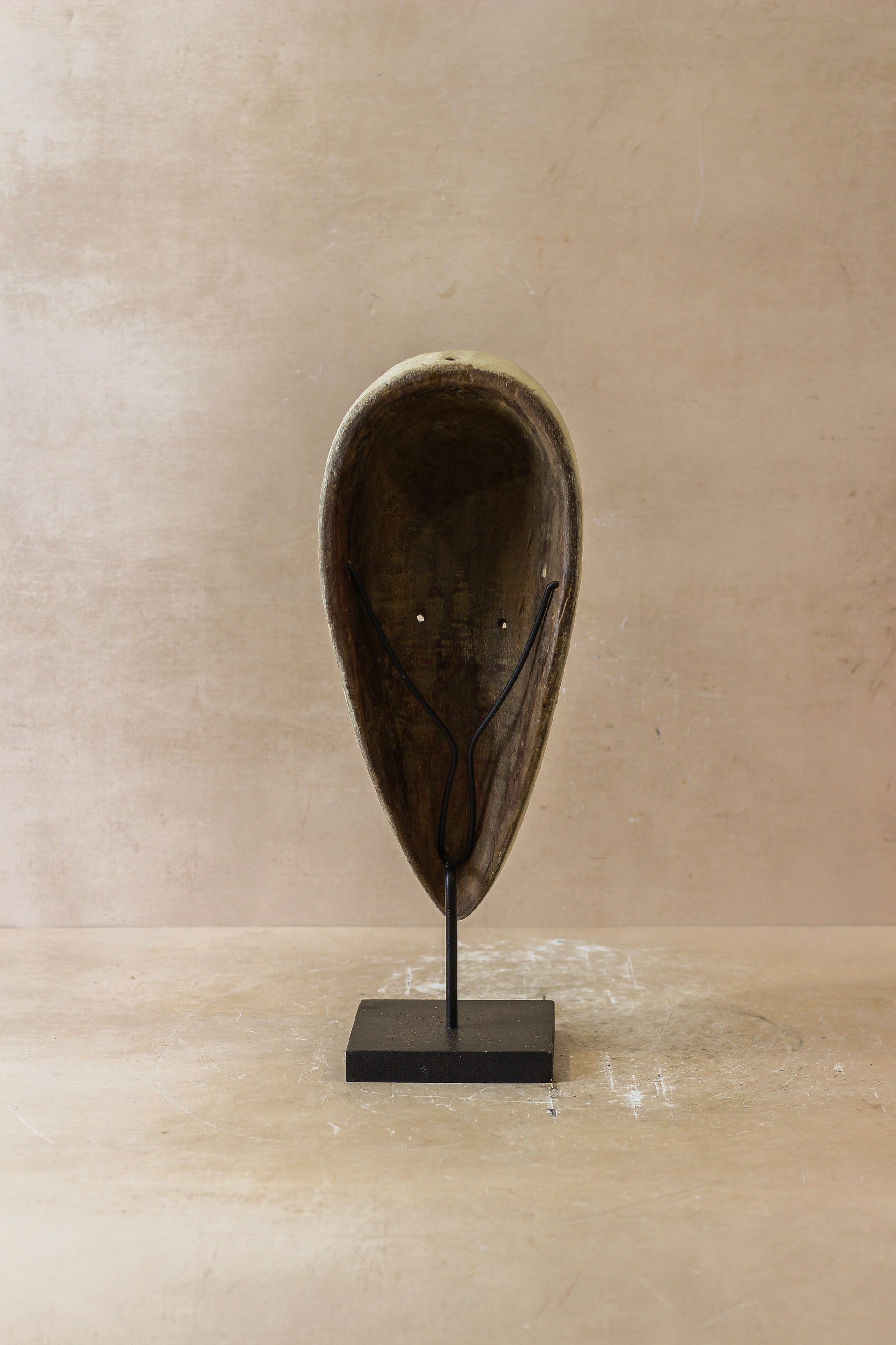 Well known for their reliquary figures the Fang also danced finely sculpted masks during a number of ritual activities. Among the Fang, white-painted masks identified with the Ngil society are known for their elegant abstractions of the human face. Ngil masks have been described as having a 'heart-shaped face' due to the facial features emphasizing refined curves of the orbital ridges above the eyes and the prominent line of the long tapering nose that ended above a discretely mouth carved at the bottom of the chin that completes the abstraction of the face. The Fang people used masks in their secret societies. Members of this male society wore the Ngil masks during the initiation of new members and the persecution of wrongdoers. Masqueraders, clad in raffia costumes and attended by helpers, would materialize in the village after dark, illuminated by flickering torchlight.