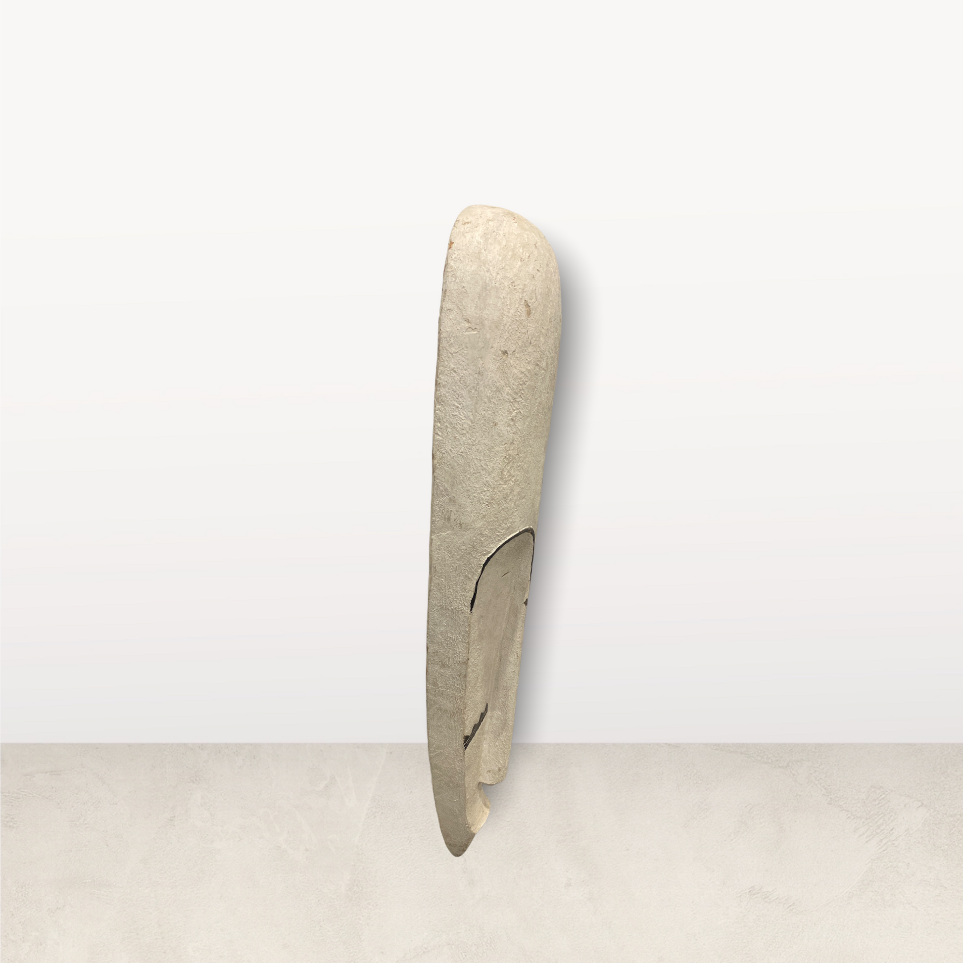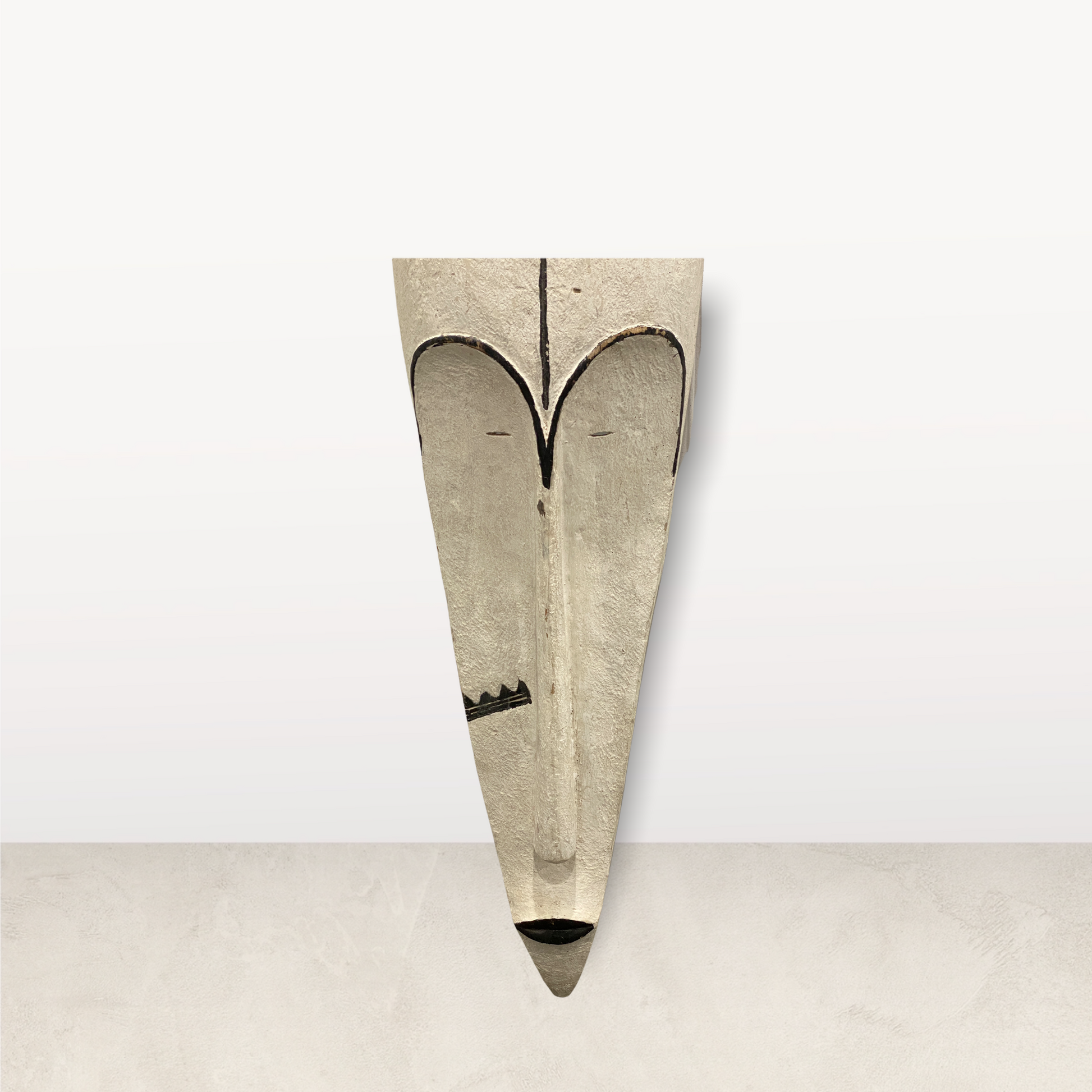 Well known for their reliquary figures the Fang also danced finely sculpted masks during a number of ritual activities. Among the Fang, white-painted masks identified with the Ngil society are known for their elegant abstractions of the human face. Ngil masks have been described as having a 'heart-shaped face' due to the facial features emphasizing refined curves of the orbital ridges above the eyes and the prominent line of the long tapering nose that ended above a discretely mouth carved at the bottom of the chin that completes the abstraction of the face. The Fang people used masks in their secret societies. Members of this male society wore the Ngil masks during the initiation of new members and the persecution of wrongdoers. Masqueraders, clad in raffia costumes and attended by helpers, would materialize in the village after dark, illuminated by flickering torchlight.