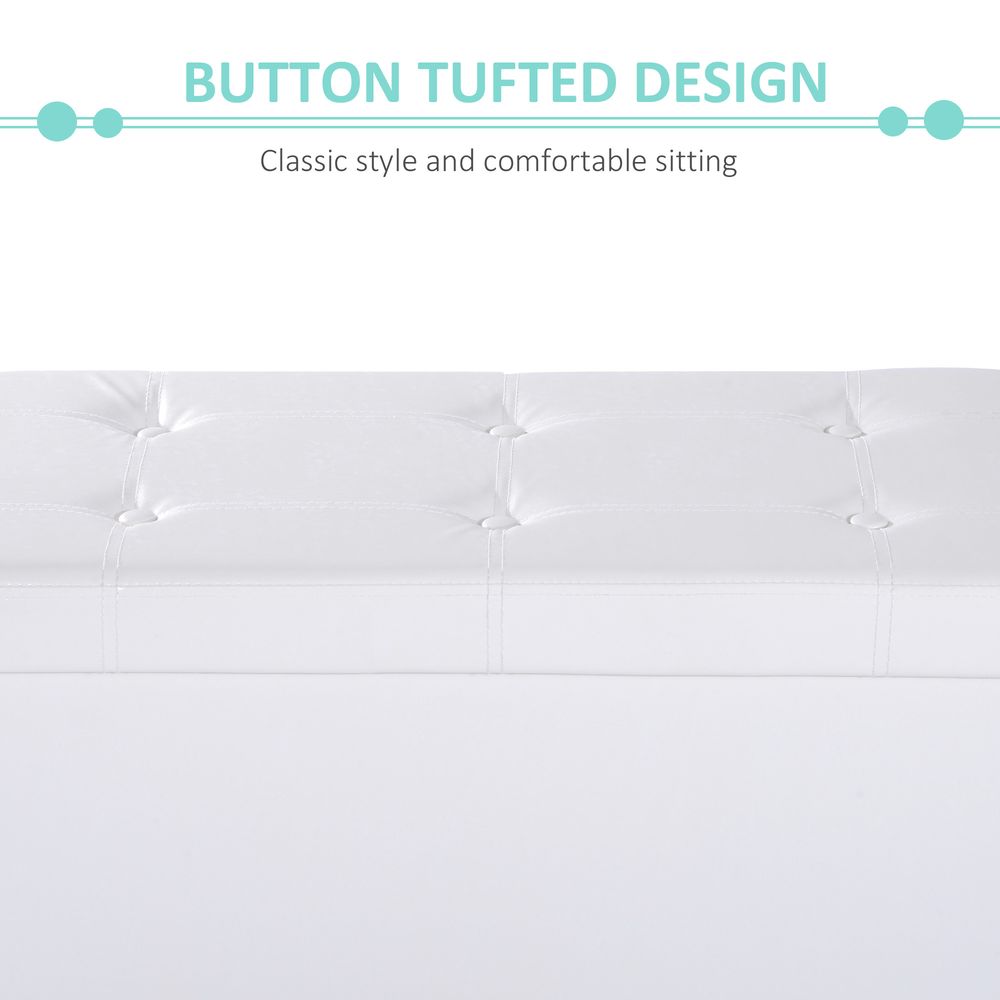 Faux Leather Storage Ottoman Bench Seat - Foldable & Elegant - Cream White