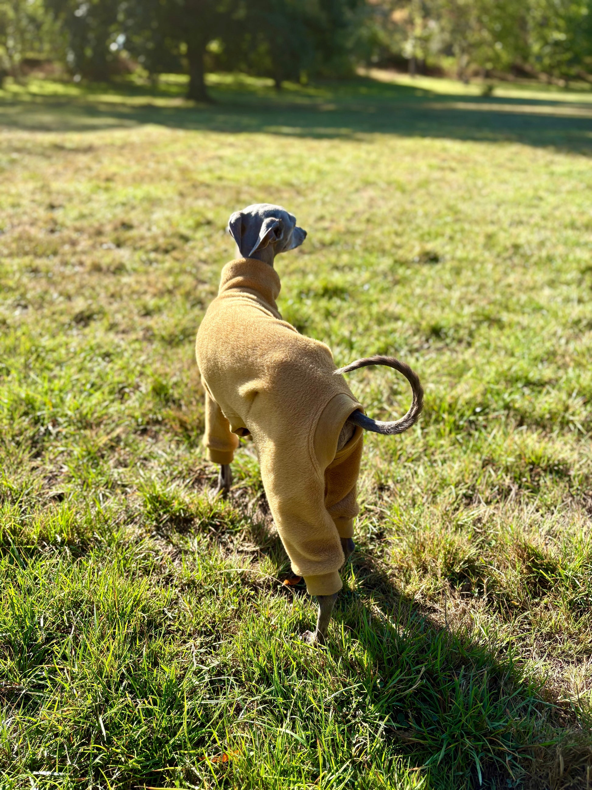 The design offers full-body coverage with long sleeves that protect their legs without restricting movement. The high neckline and ribbed cuffs add extra warmth around the neck and limbs and ensures your dog stays comfortable during walks or lounging at home.