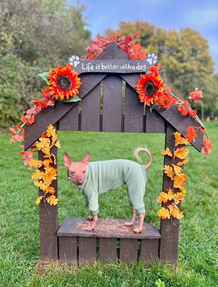 This sweatshirt suit is perfect for keeping your fashionable pup snug and stylish in colder weather.