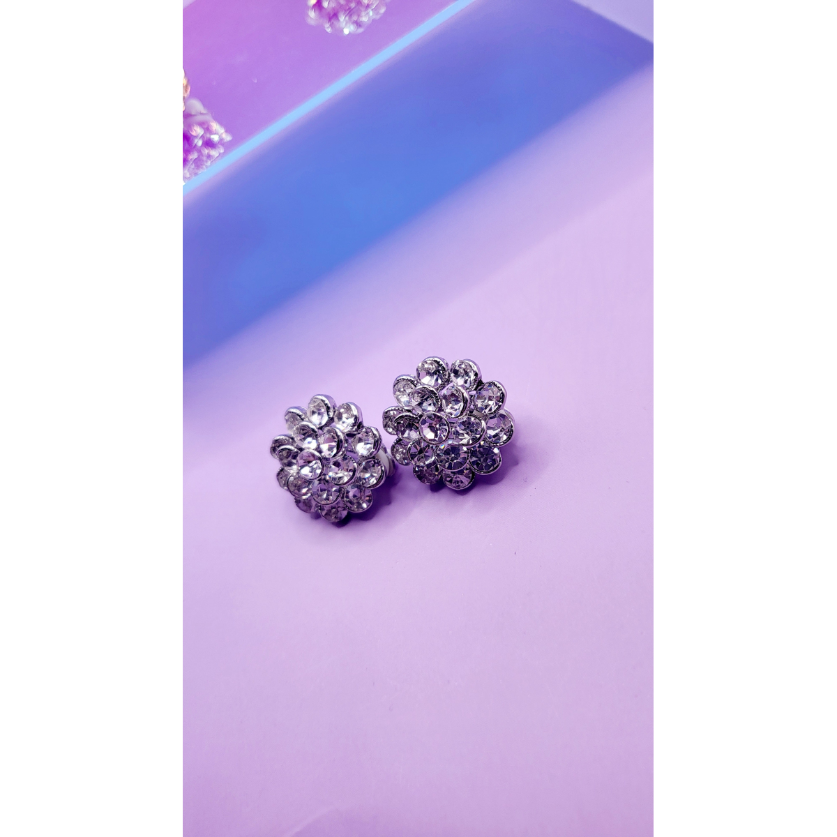 Flower Cluster Crystal Non Pierced Clip On Earrings