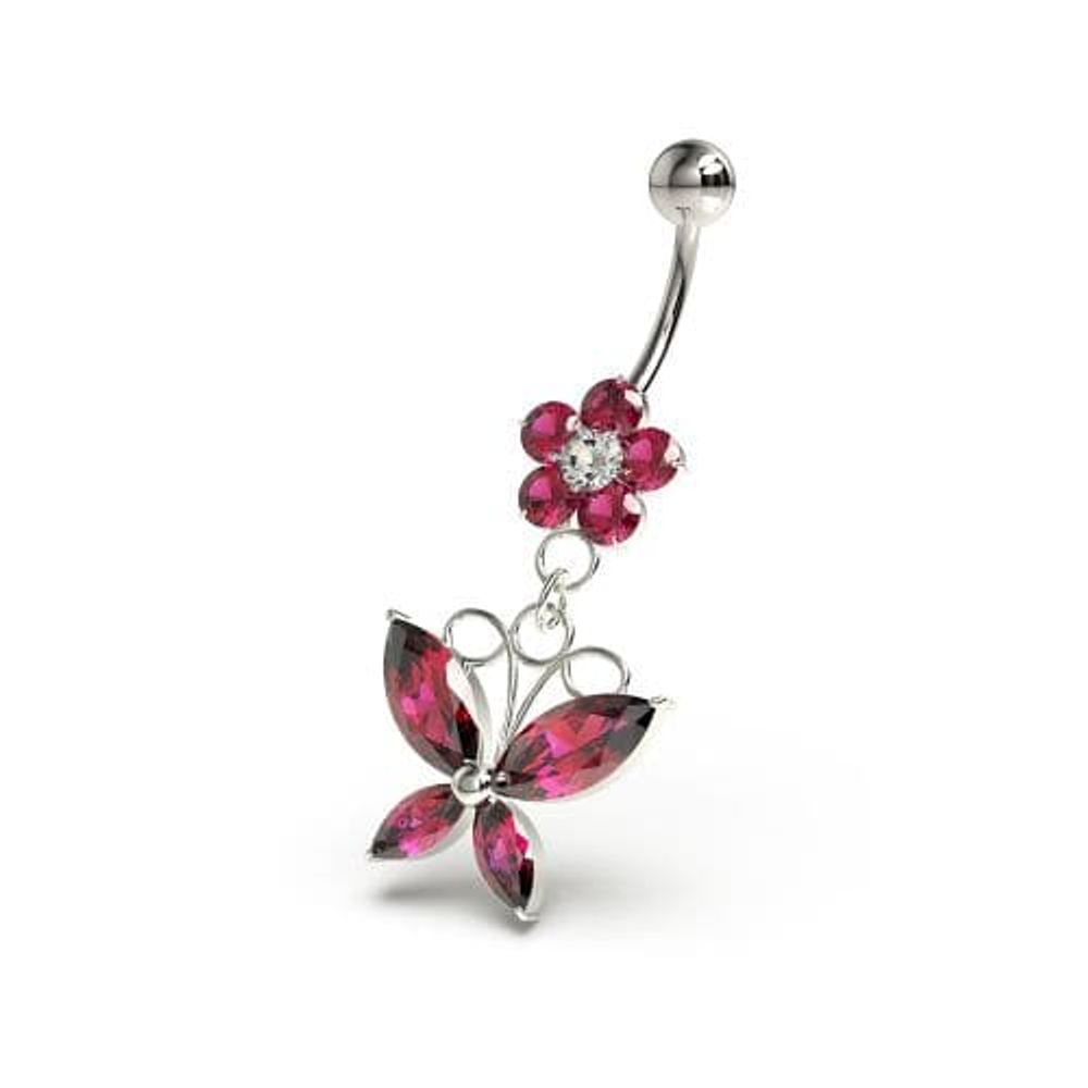 Flower with Dangling butterfly Navel Belly Piercing
