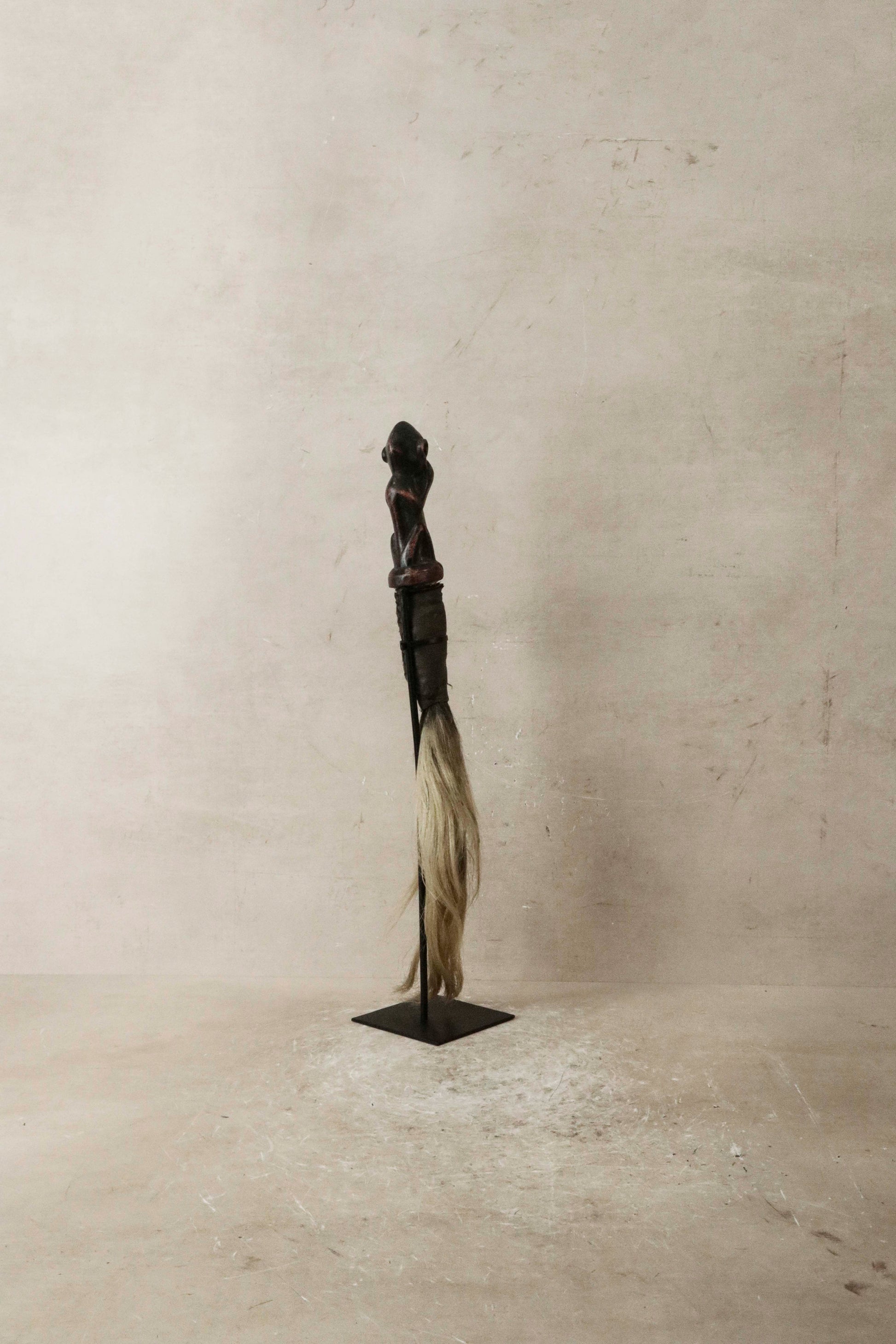 Fly-whisks are frequently used in the traditional regales of royalty and nobility in many parts of the African continent. Fly whisks are called "ìrùkẹ̀rẹ̀" in Yoruba, were used by Yoruba monarchs and chiefs as a symbol of power and respect.