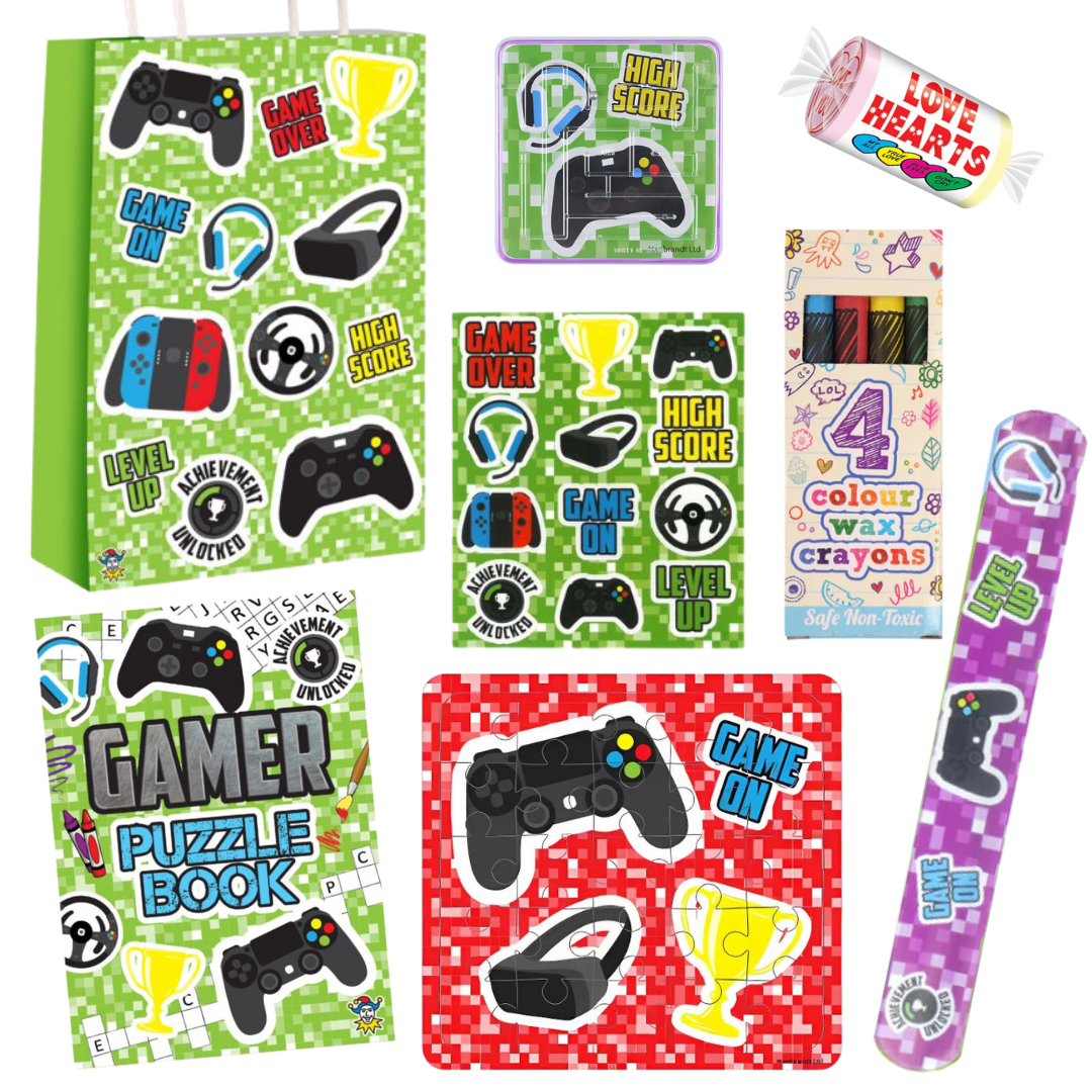 Create the most memorable party for your little one, with our wide range of pre-filled party bags at PoundFun. Complete the perfect party with our Gamer Pre-Filled Party Bags, which comes with a total of 8 items, the biggest (and most cost effective) pre-made party bag available to buy online in the UK! These Gamer themed bags are filled with all the essentials for a fantastic kids party. Perfect for any Gamer lover & party enthusiast, just add cake to your bag and let the fun begin!