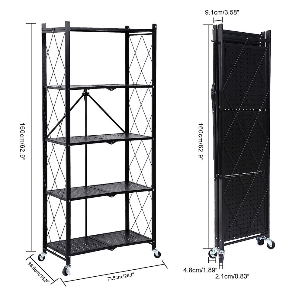 Perfect Size Foldable Shelf: Open size: 72 x 36 x 160cm. The height on each layer not only creat more additional space but also keep your home clean and orderly. Folded size: 10 x 36 x 160cm. The shelf can be stored under bed, in a narrow closets, behind doorways and so on, It will not take up more space when not in use.
