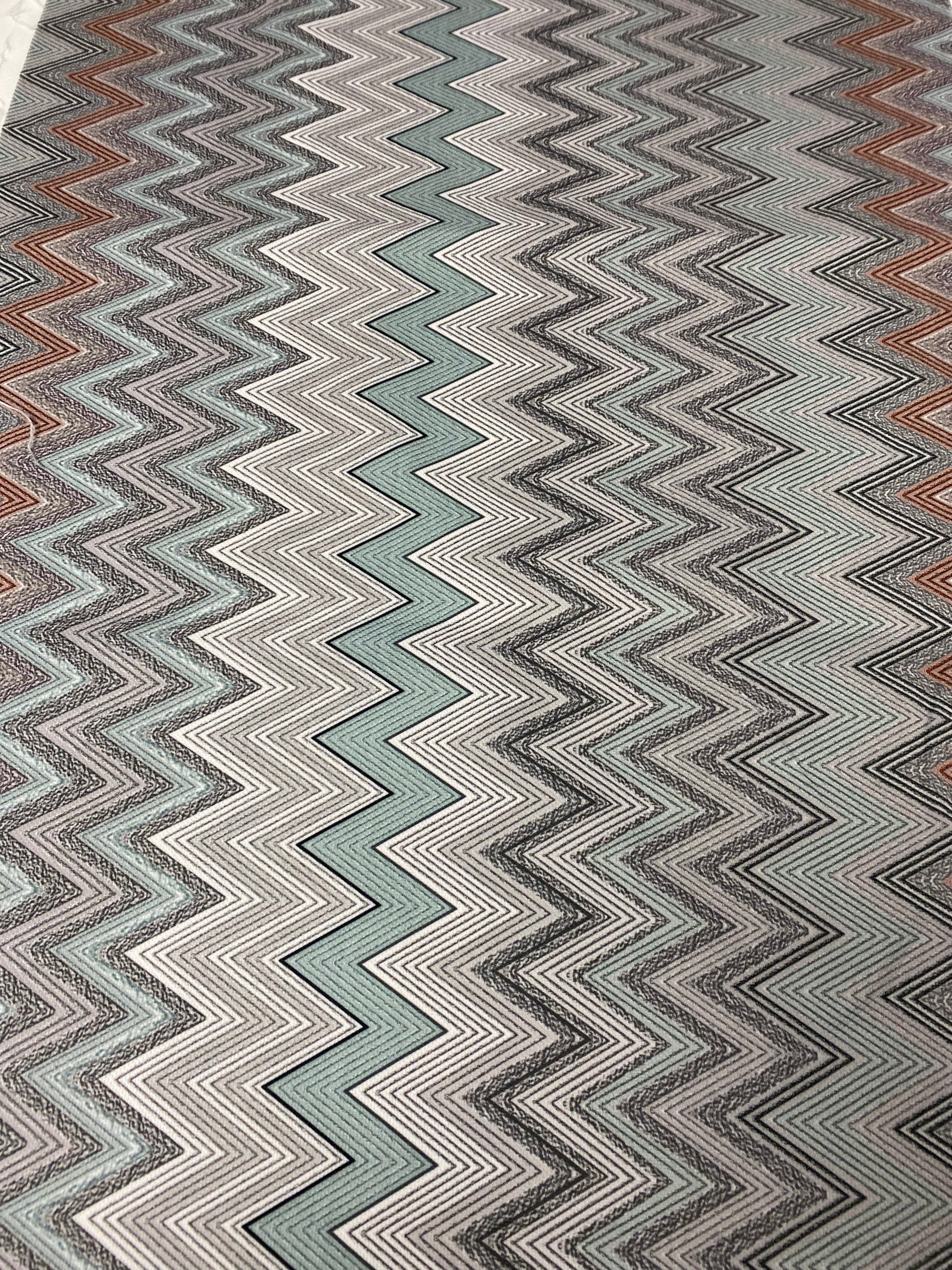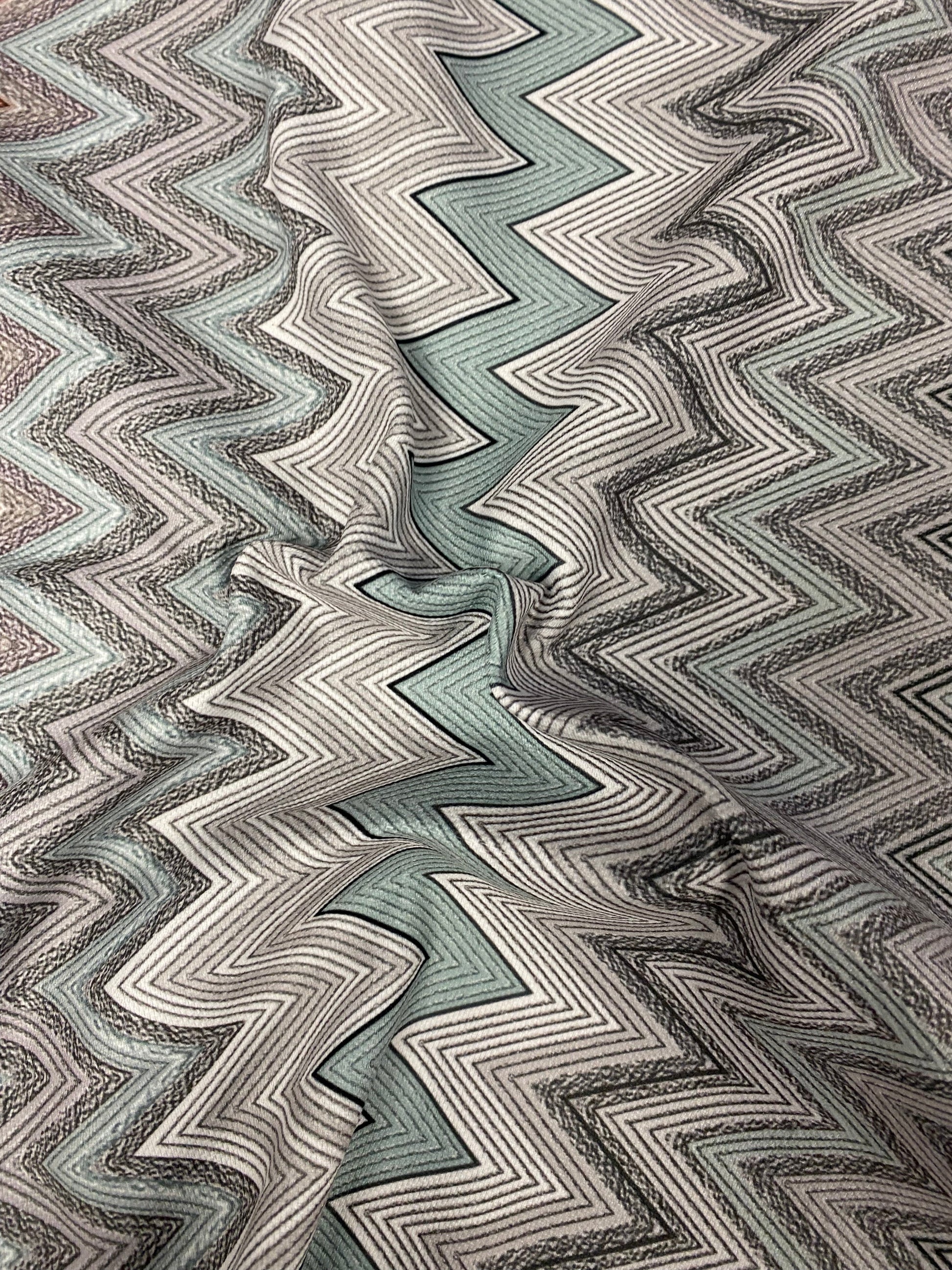 Geometric Chevron Pattern Fabric – Soft Textured Knit in Mint, Black & Rust Tones for Apparel and Home Decor