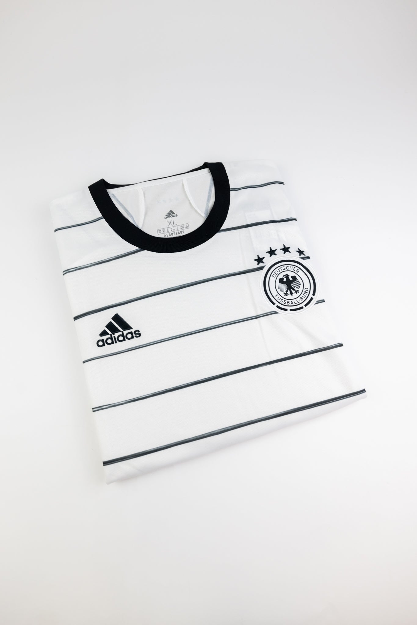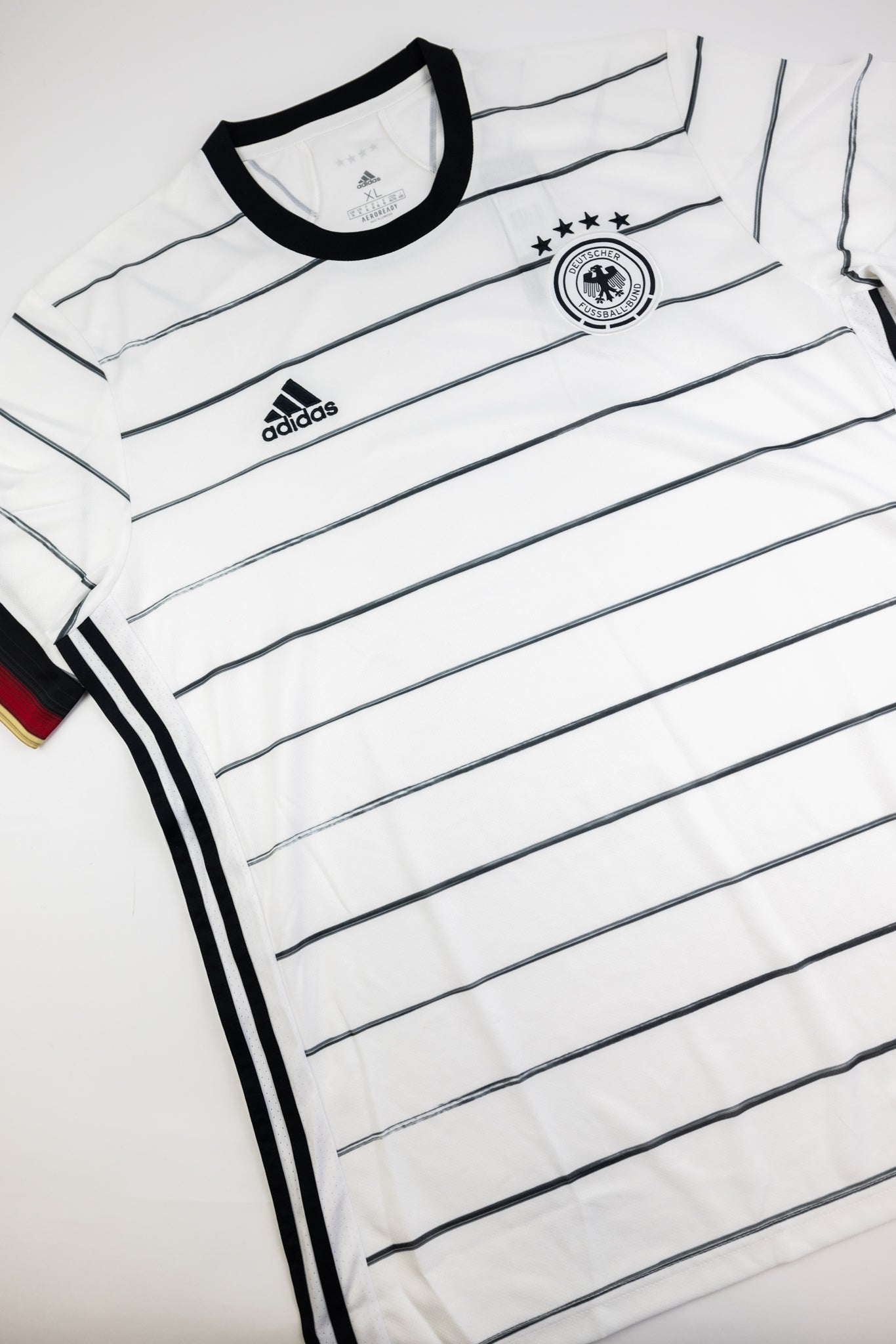 Adidas made football shirt as worn when Die Mannschaft competed in Euro 2020, being seeded in the consensus 'Group of Death' alongside France, Portugal and Hungary. Worn by the likes of Timo Werner, Thomas Muller and Marco Reus.