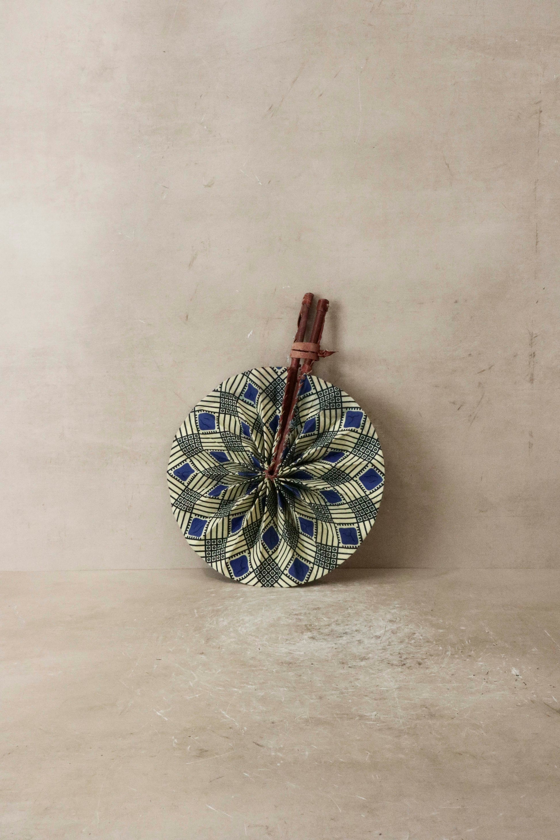 Handmade in Ghana these fans are made from traditional african fabric which has been stiffened and pleated and then made into a fan and fastened with a butter soft leather thong.