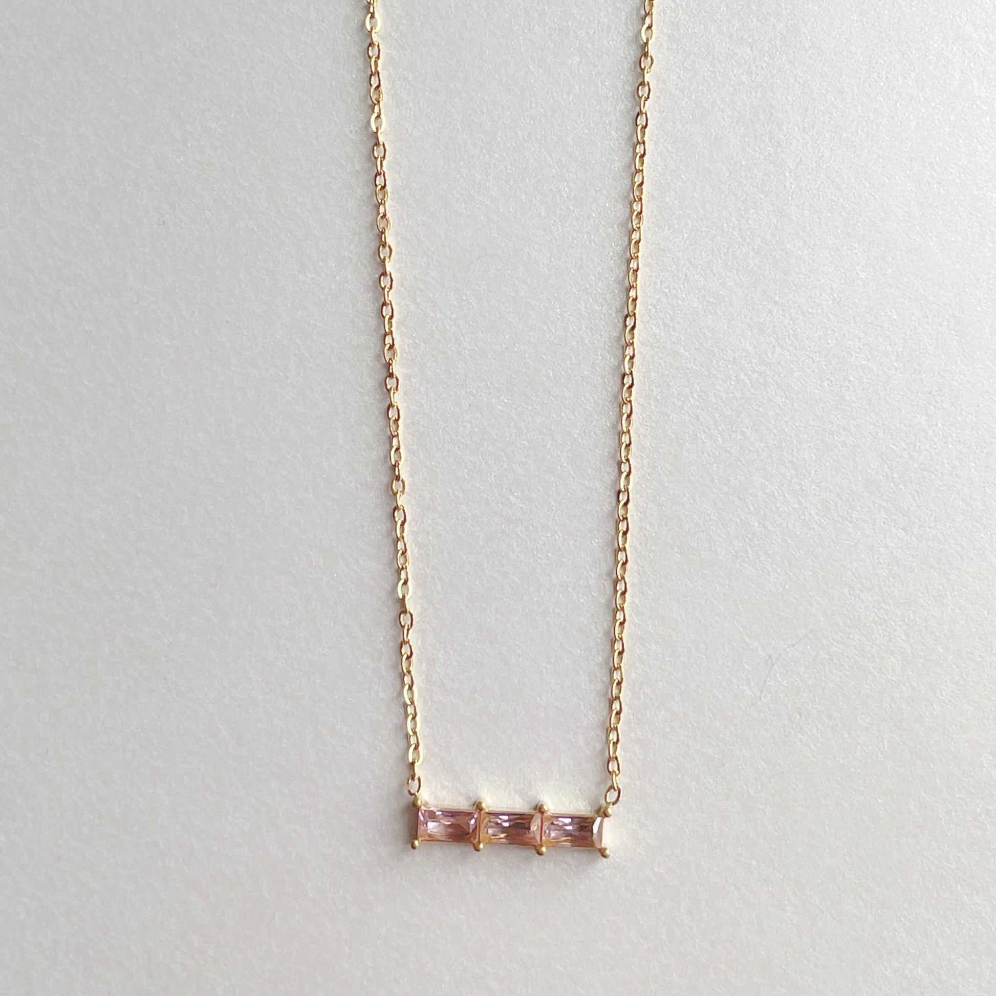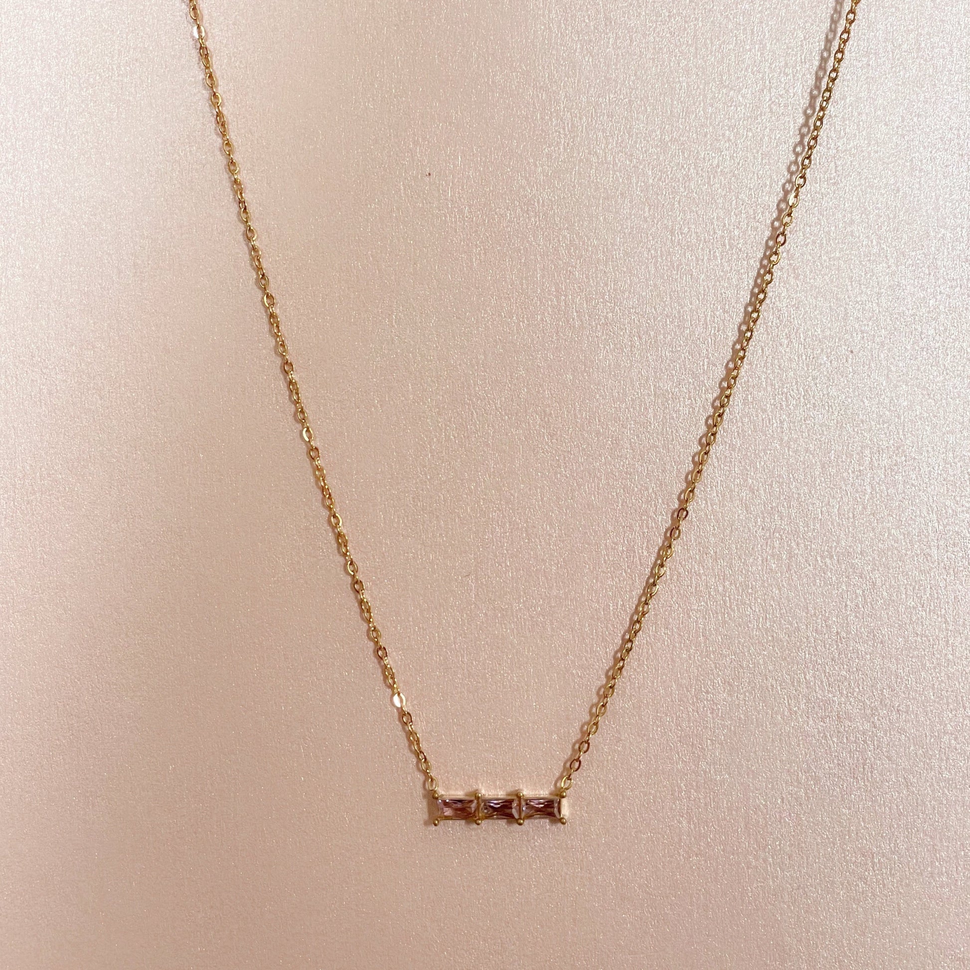 Introducing Gia Luxe, an exclusive 18k gold plated blush necklace. This unique necklace features a delicate bamboo pendant, perfected with a subtle shimmer, adding a touch of opulence to any outfit. Perfect for when you want to make a statement without saying a word.