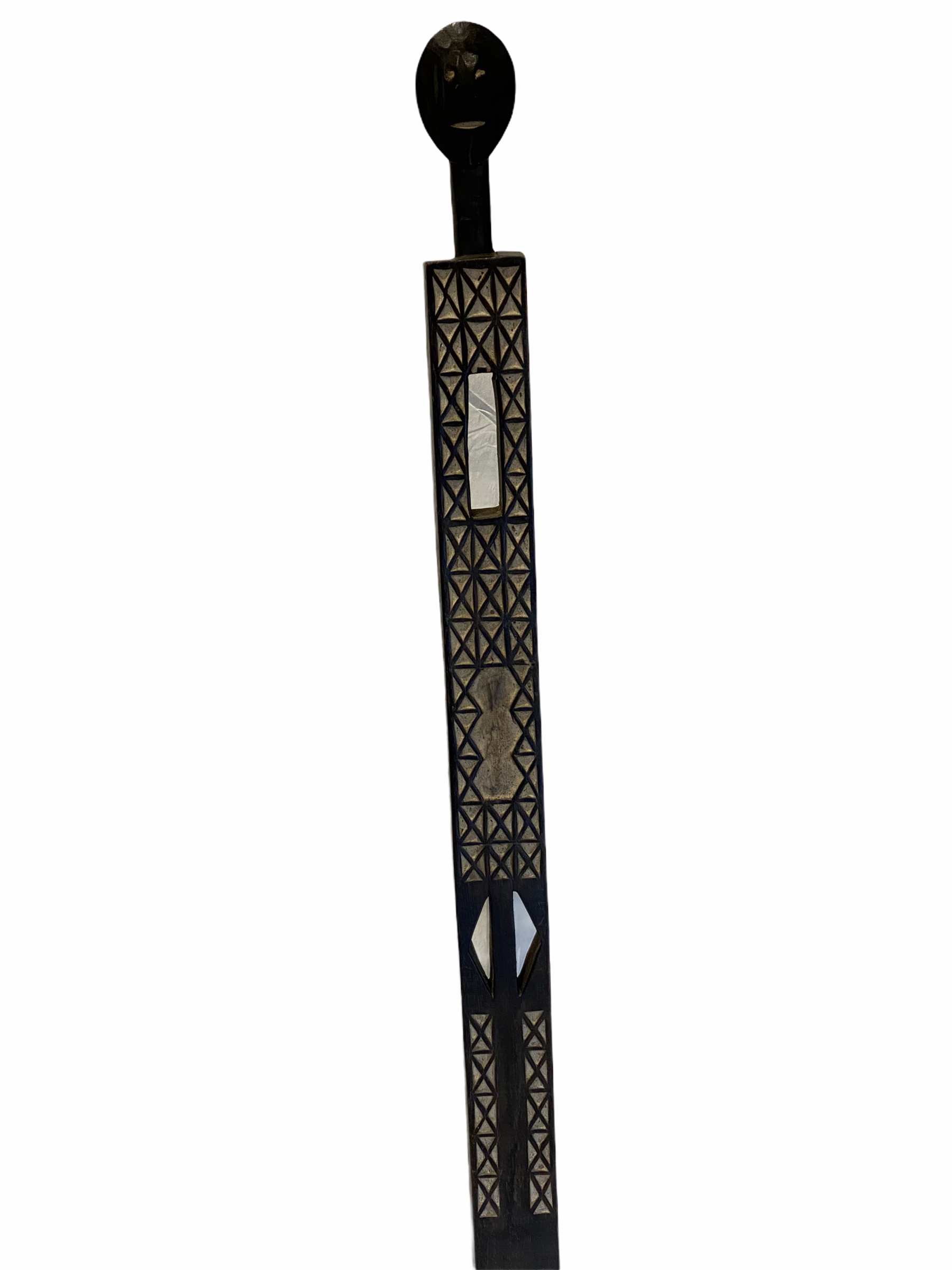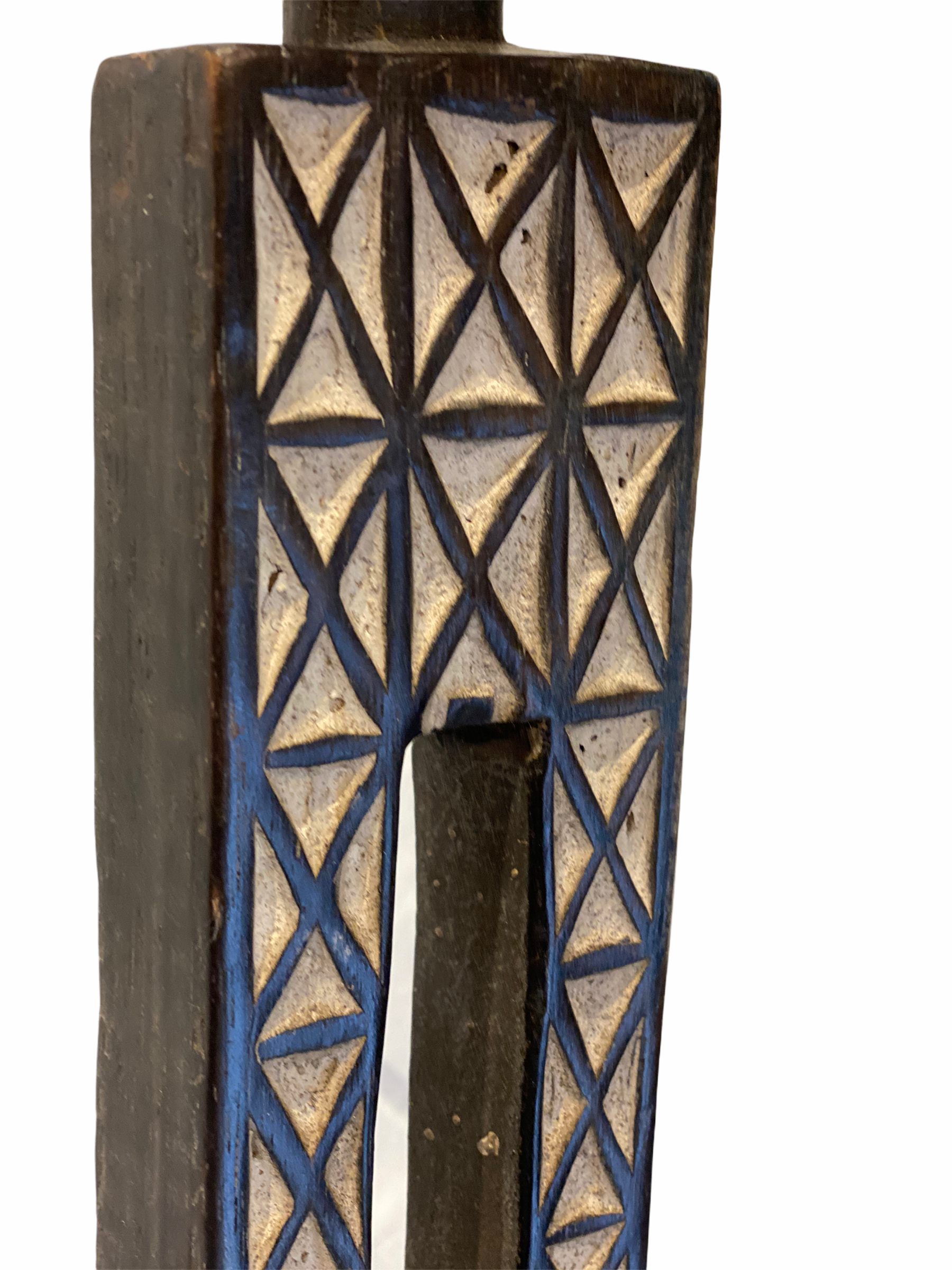 Our beautiful bespoke hand carved posts are from the Bantu-speaking people called Gigiama. As part of their faith snd beliefs these carvings are symbols to honour the deceased. The design is rows of triangular chip-carving patterns and a 3 dimensional head. The two triangular cut outs represent the hips of a person.