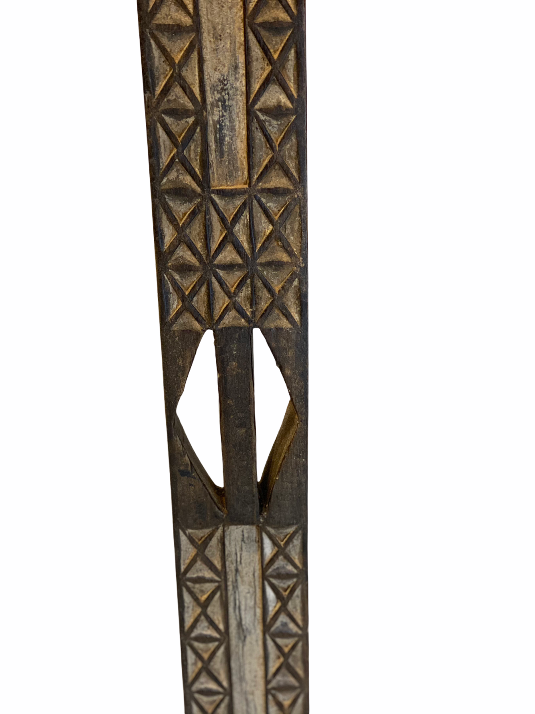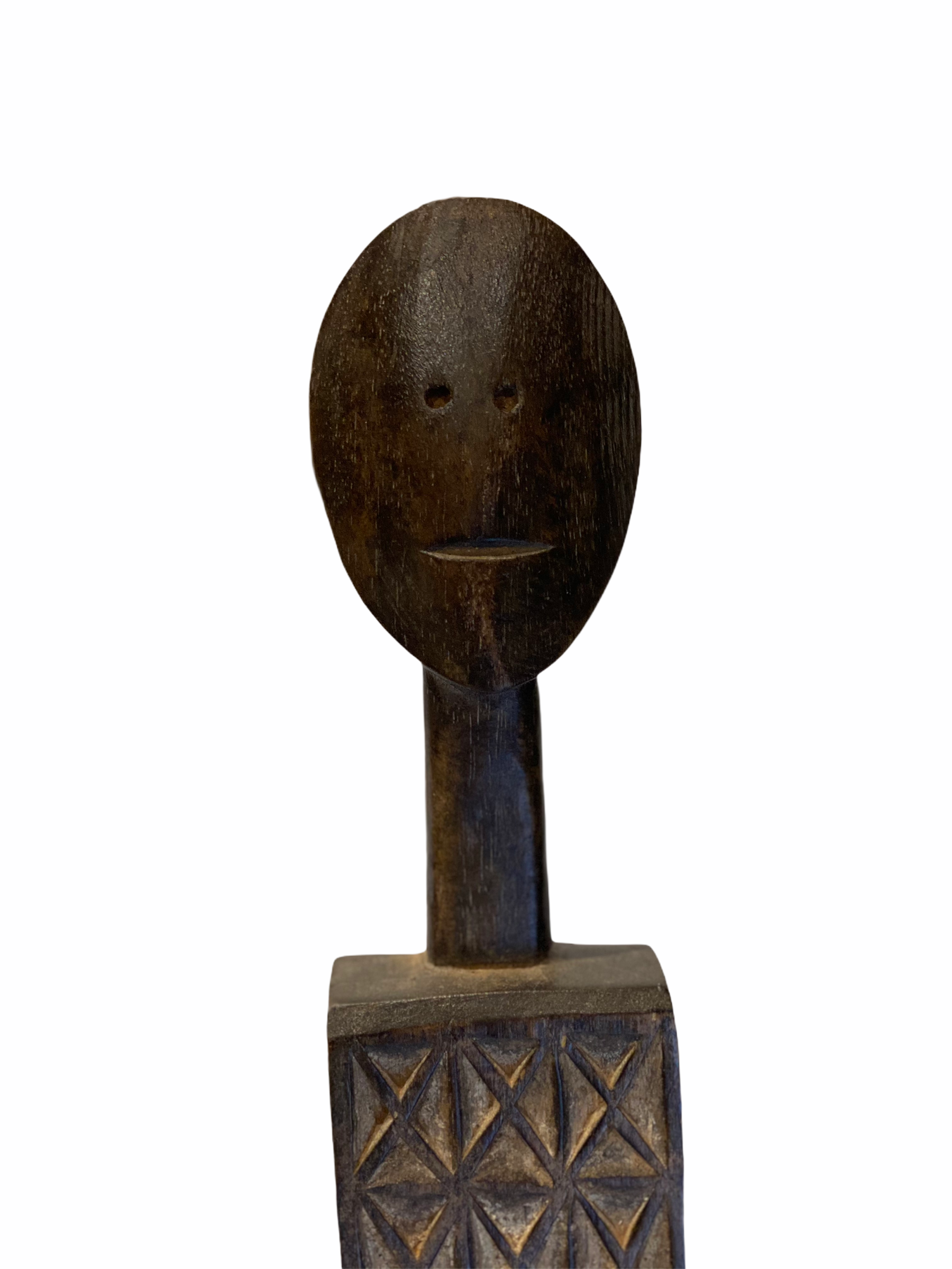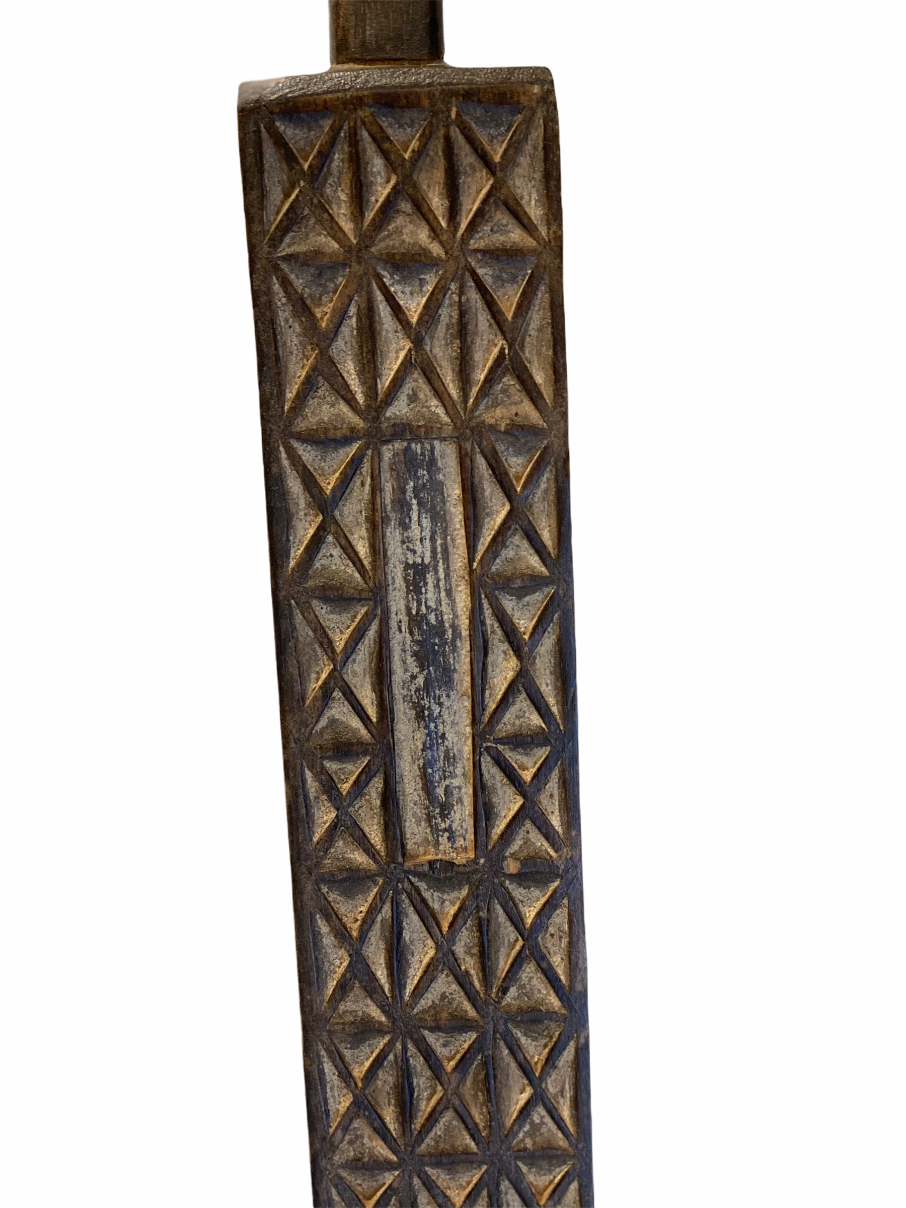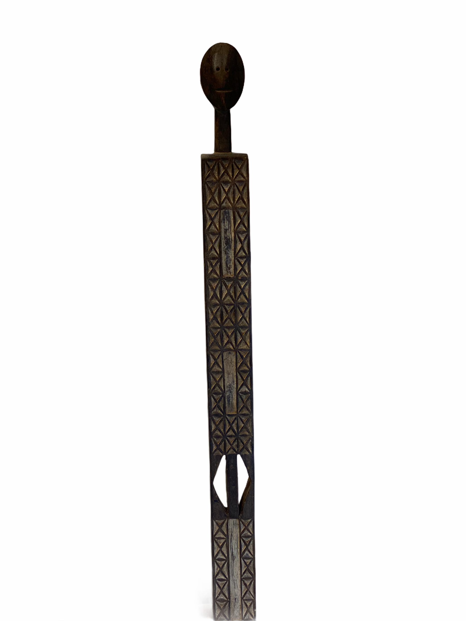 Our beautiful bespoke hand carved posts are from the Bantu-speaking people called Gigiama.  As part of their faith snd beliefs these carvings are symbols to honour the deceased.  The design is rows of triangular chip-carving patterns and a 3 dimensional head. The two triangular cut outs represent the hips of a person.