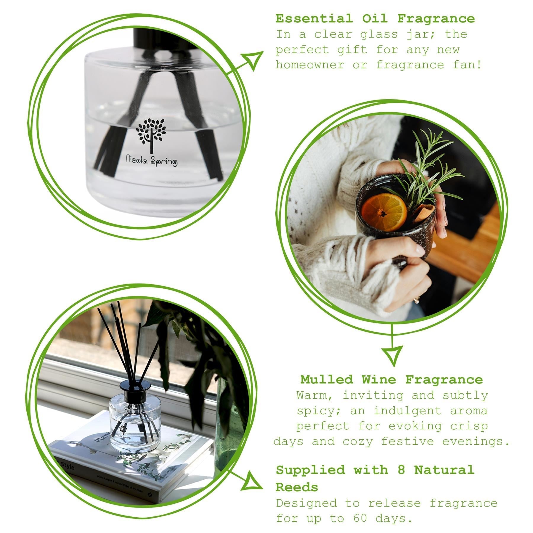 Breathe new life into bedrooms, bathrooms, hallways and more with this Mulled Wine Scented Reed Diffuser from Nicola Spring.