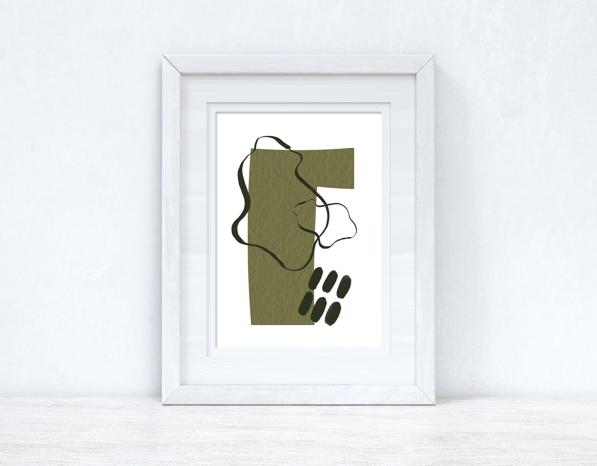 Greens & Black Abstract 5 Colour Shapes Home Wall Decor Print