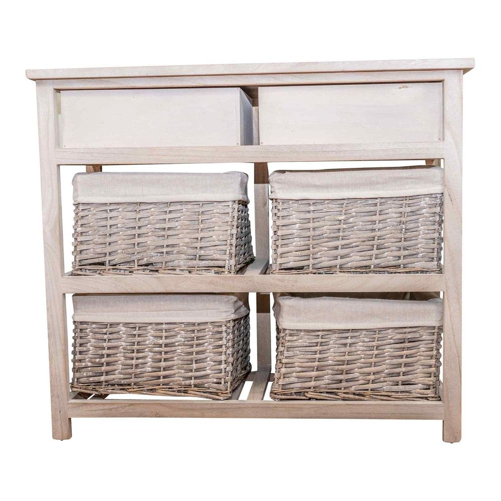 Grey Wood Grain Cabinet | 2 Drawers & 4 Baskets | W74cm x D29.1cm x H64cm