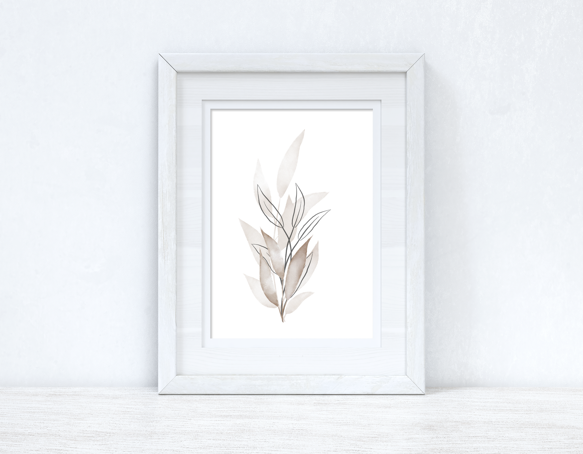 Greys & Naturals Watercolour Leaves Bedroom Home Wall Decor Print