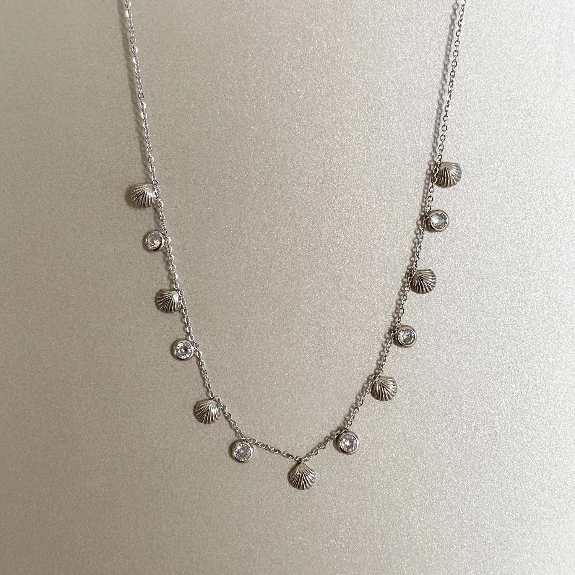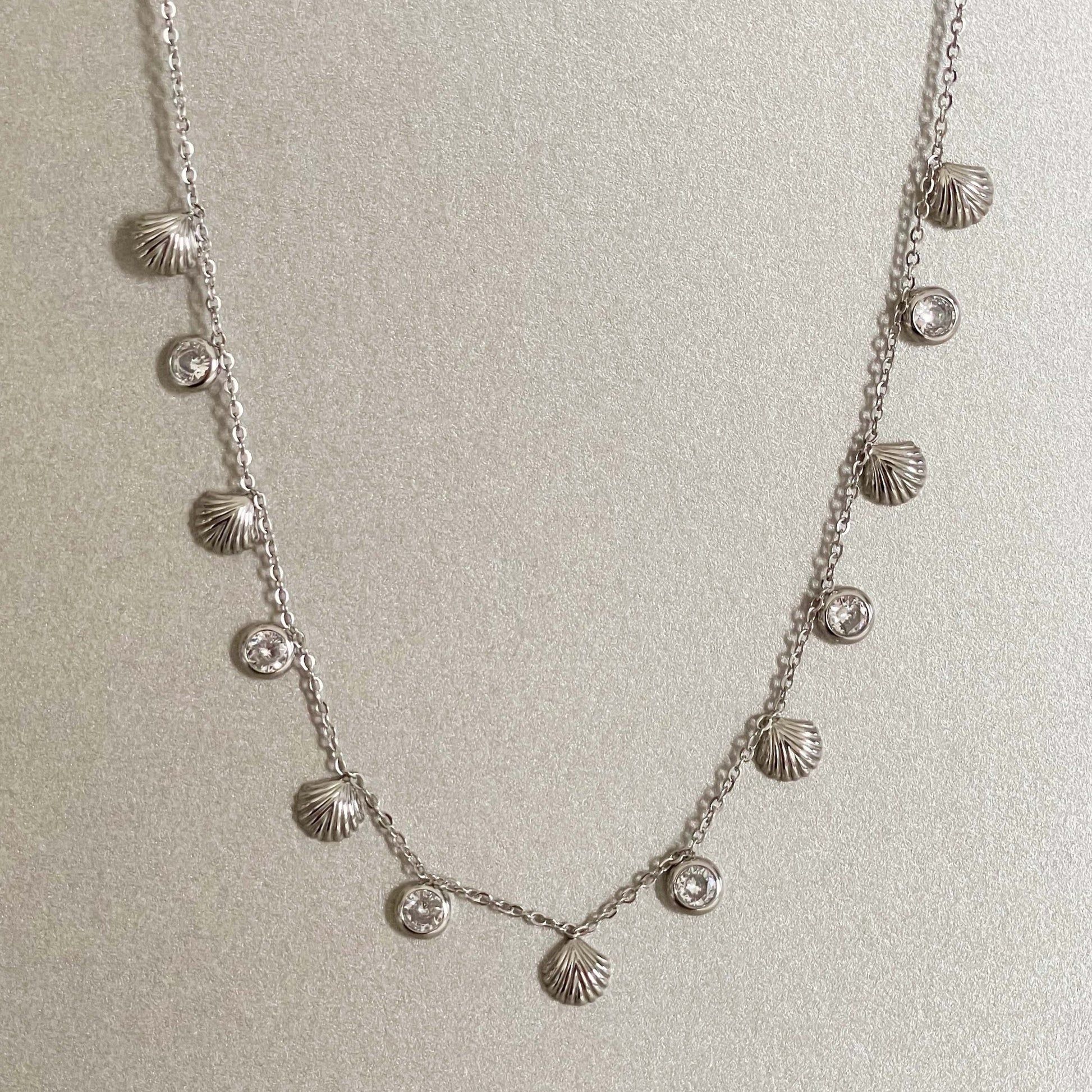 The Hanaali Luxe necklace is a beautifully delicate and adorned with sea shell and jewelled charms.