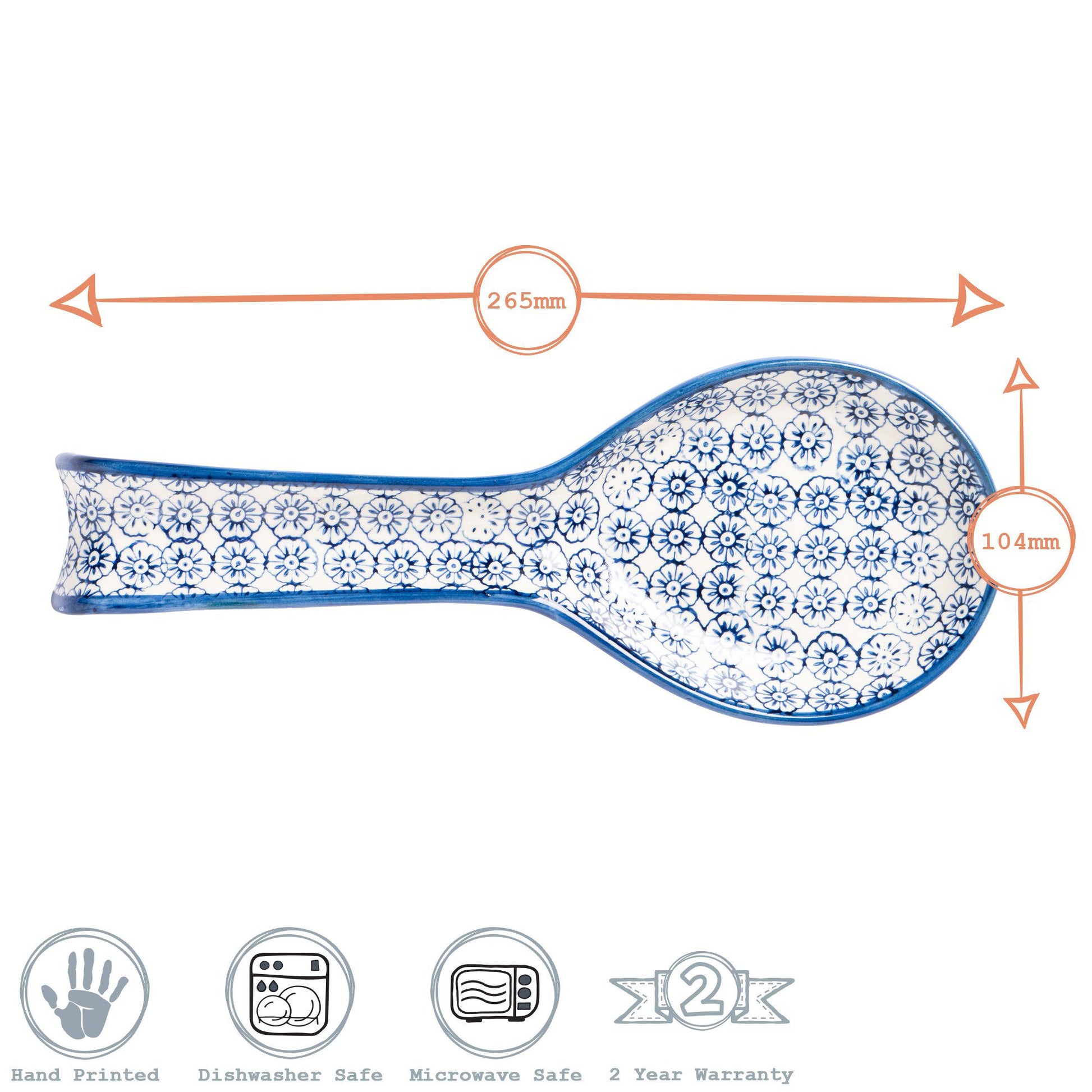 Keep kitchen surfaces free from stains and spillages with this Hand-Printed Floral Patterned China Cooking Spoon and Utensil Rest from Nicola Spring.