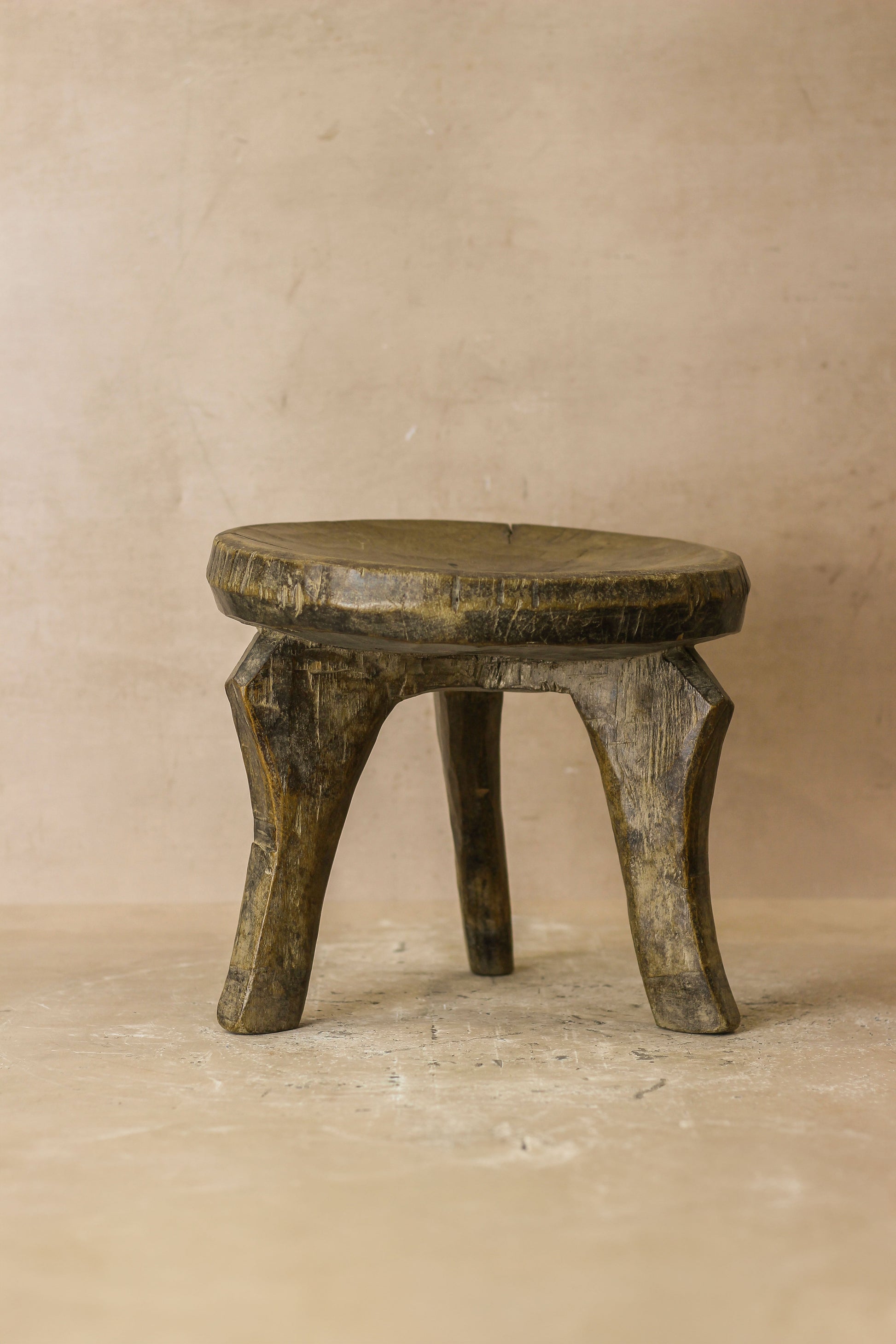 Historical Details: The seat is the most important piece of furniture in Africa. It serves as a social insignia because every person is entitled to a type of seat that corresponds to their social rank. These Hehe stools are generally 3 or 4 legged with a simple round polished top.