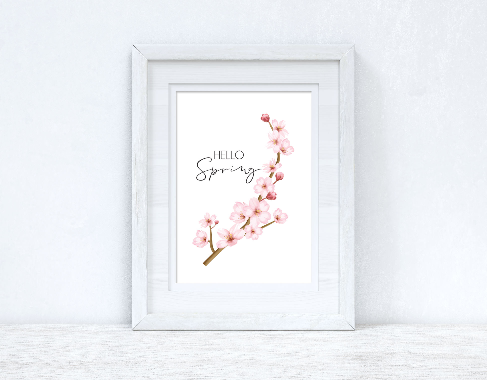 Hello Spring Cherry Blossom Spring Seasonal Wall Home Decor Print