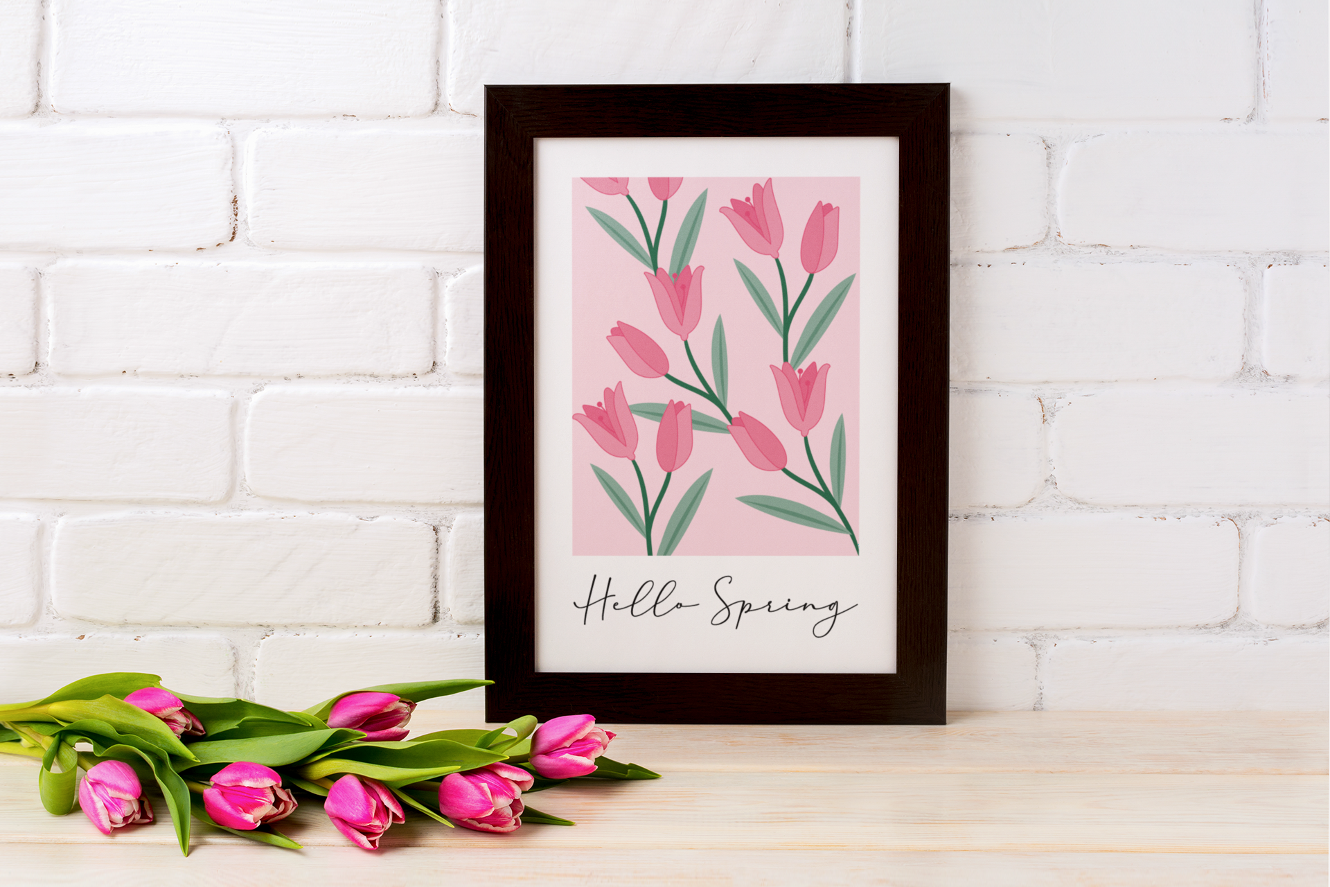 Hello Spring Tulips Pink Spring Easter Seasonal Wall Home Decor Print