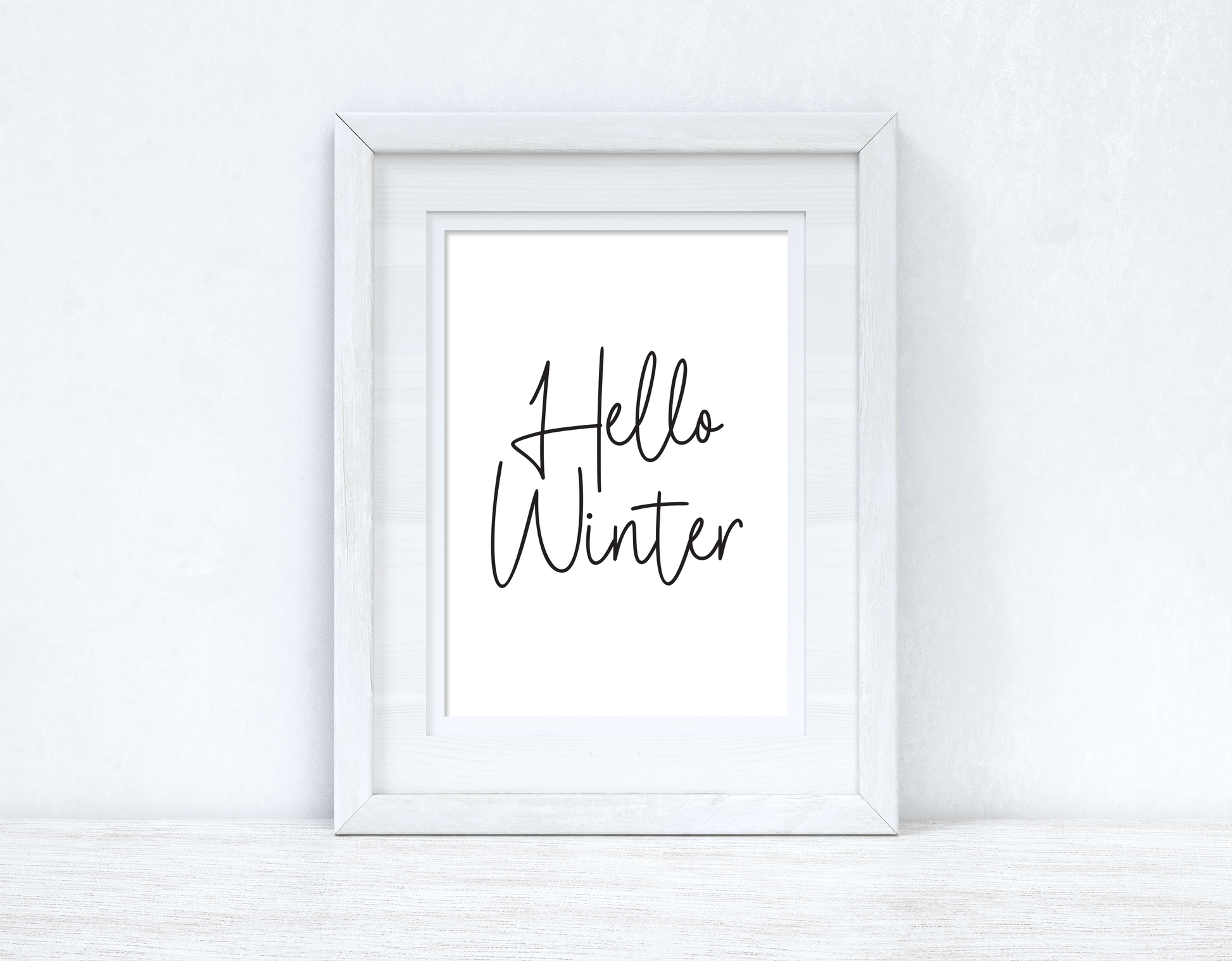 Hello Winter Black & White Christmas Seasonal Wall Home Decor Print