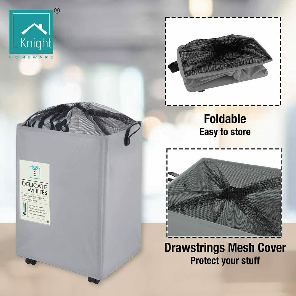 High-Capacity 60L Laundry Storage Basket on Wheels | Collapsible and Lightweight | Mesh Cover (Grey)