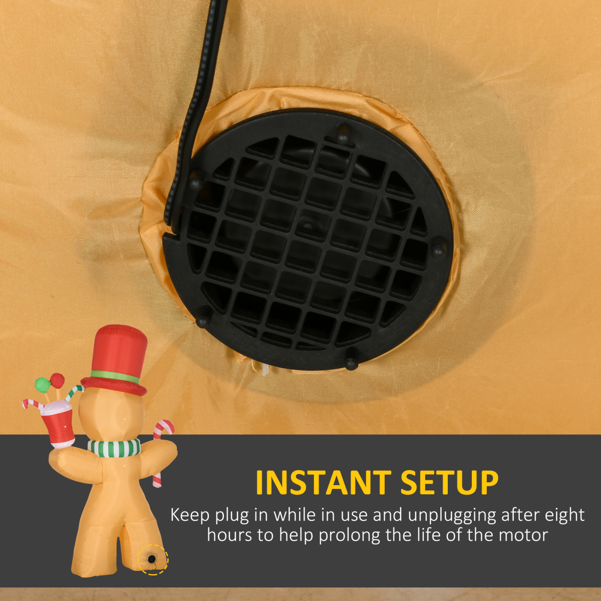 HOMCOM 7.5FT Christmas Inflatables Gingerbread Man with Candy Cane LED Lights