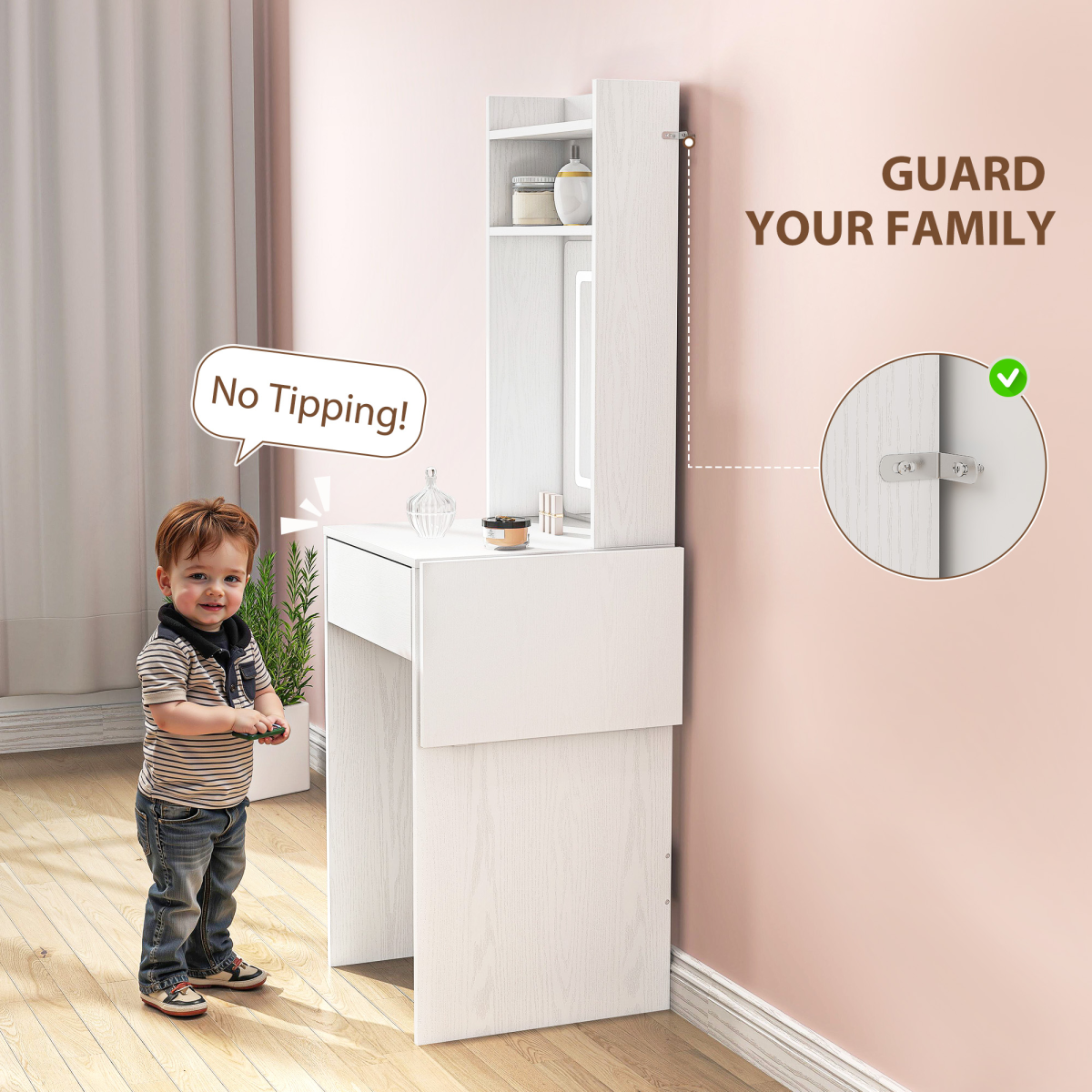 ● Anti-tip kits add safety and keep the vanity stable in use