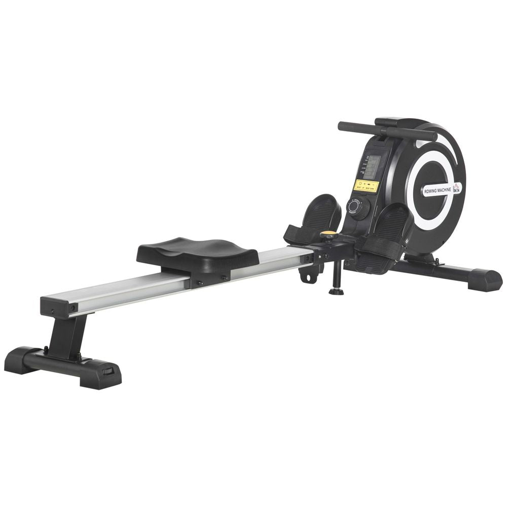 HOMCOM Fitness Magnetic Rowing Machine w/ LCD Monitor - Adjustable & Convenient" Description: Get ready to transform your fitness routine with our premium HOMCOM Fitness Magnetic Rowing Machine. Designed with convenience and quality in mind, this rower delivers the challenging feel of outdoor rowing right in the comfort of your own home or office. Row into shape with ease thanks to the smoother and quieter magnetic tension system, featuring 8 levels of adjustable tension. Monitor your progress effortlessly using the large LCD console, which provides real-time feedback on your workout metrics. Experience ultimate comfort as you row with the fully padded seat, ensuring a smooth and enjoyable workout. The larger anti-slip foot pedals offer stability and security, allowing you to fully focus on your rowing technique. When not in use, this rowing machine can be easily folded for compact storage, making it an ideal choice for those with limited space. Product Highlights: - Smooth and quiet magnetic tension system with 8 adjustable levels - Convenient large LCD console for tracking workout metrics - Fully padded seat for ultimate comfort - Larger anti-slip foot pedals for stability - Foldable design for easy storage Take your fitness journey to the next level with the HOMCOM Fitness Magnetic Rowing Machine. Invest in your health and wellbeing today!