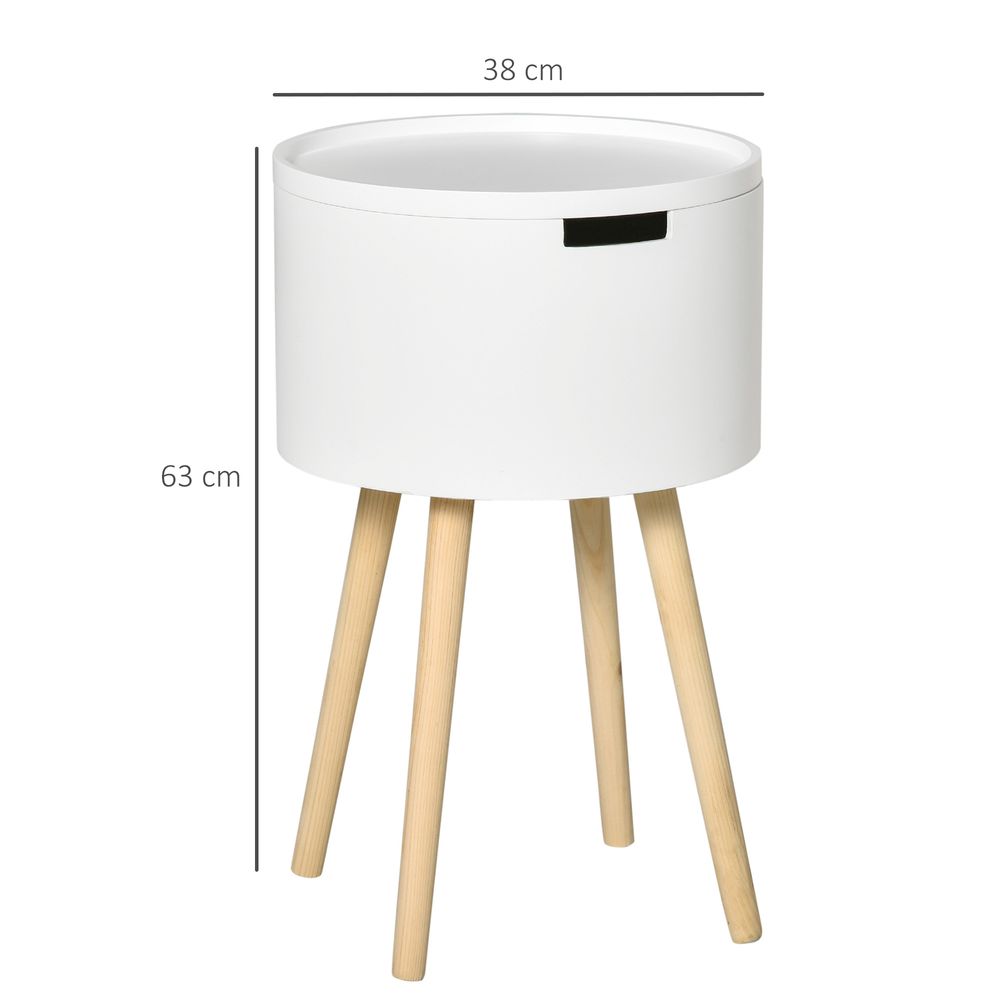 HOMCOM Modern Side Table with Hidden Storage Space, Round Night Stand with Removable Tray Wood Frame End Coffee Table for Living Room, White