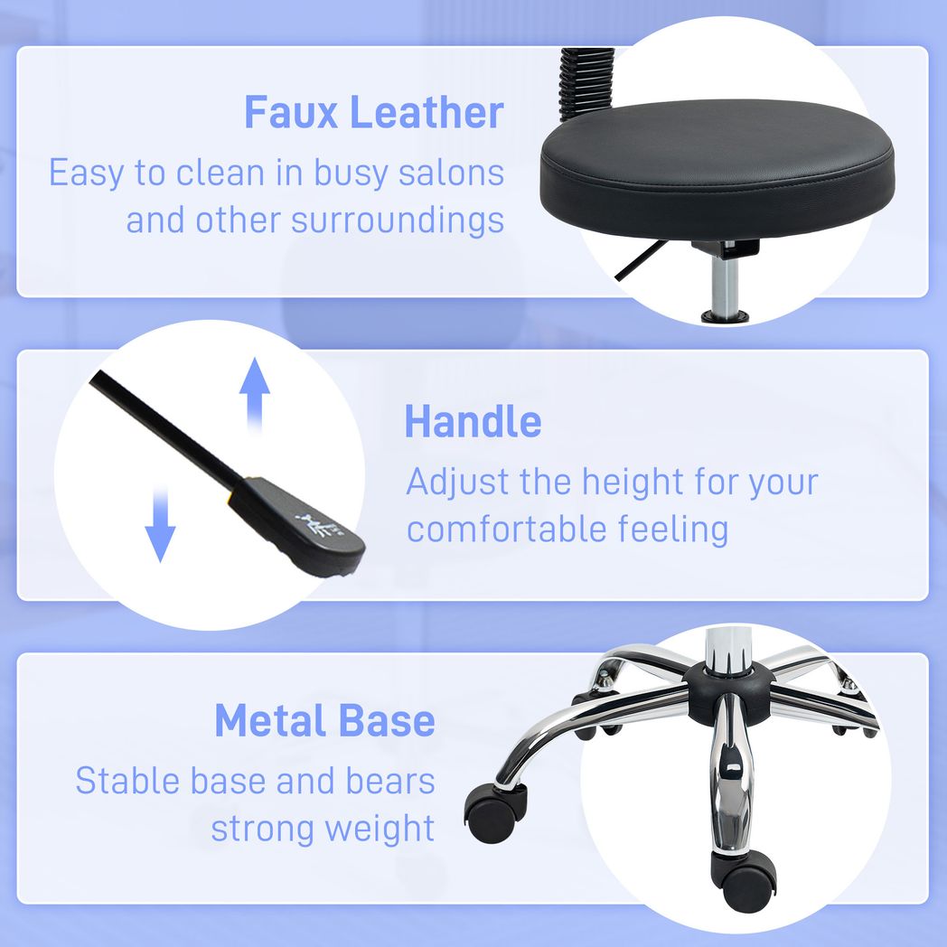 HOMCOM Rolling Stool with Backrest, Wheels, Faux Leather Salon Chair