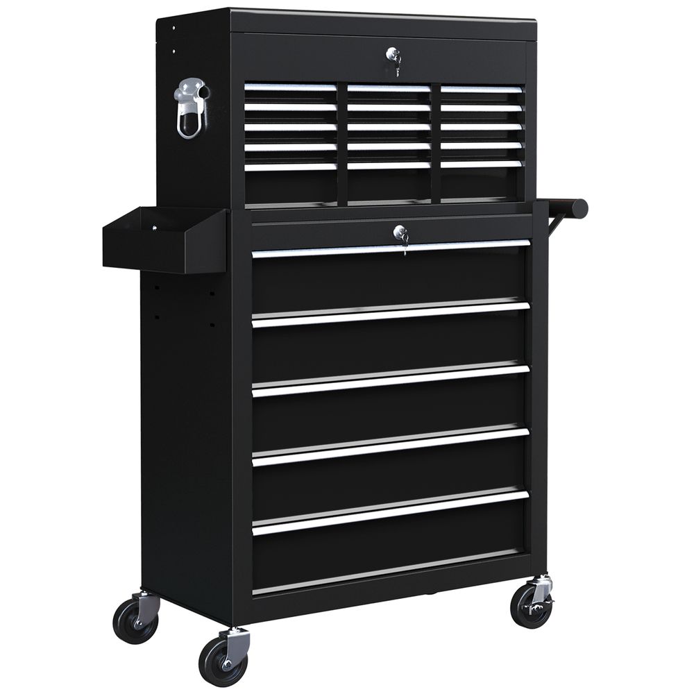 HOMCOM Rolling Tool Chest Lockable Roller Cabinet with with 14 Drawers Black