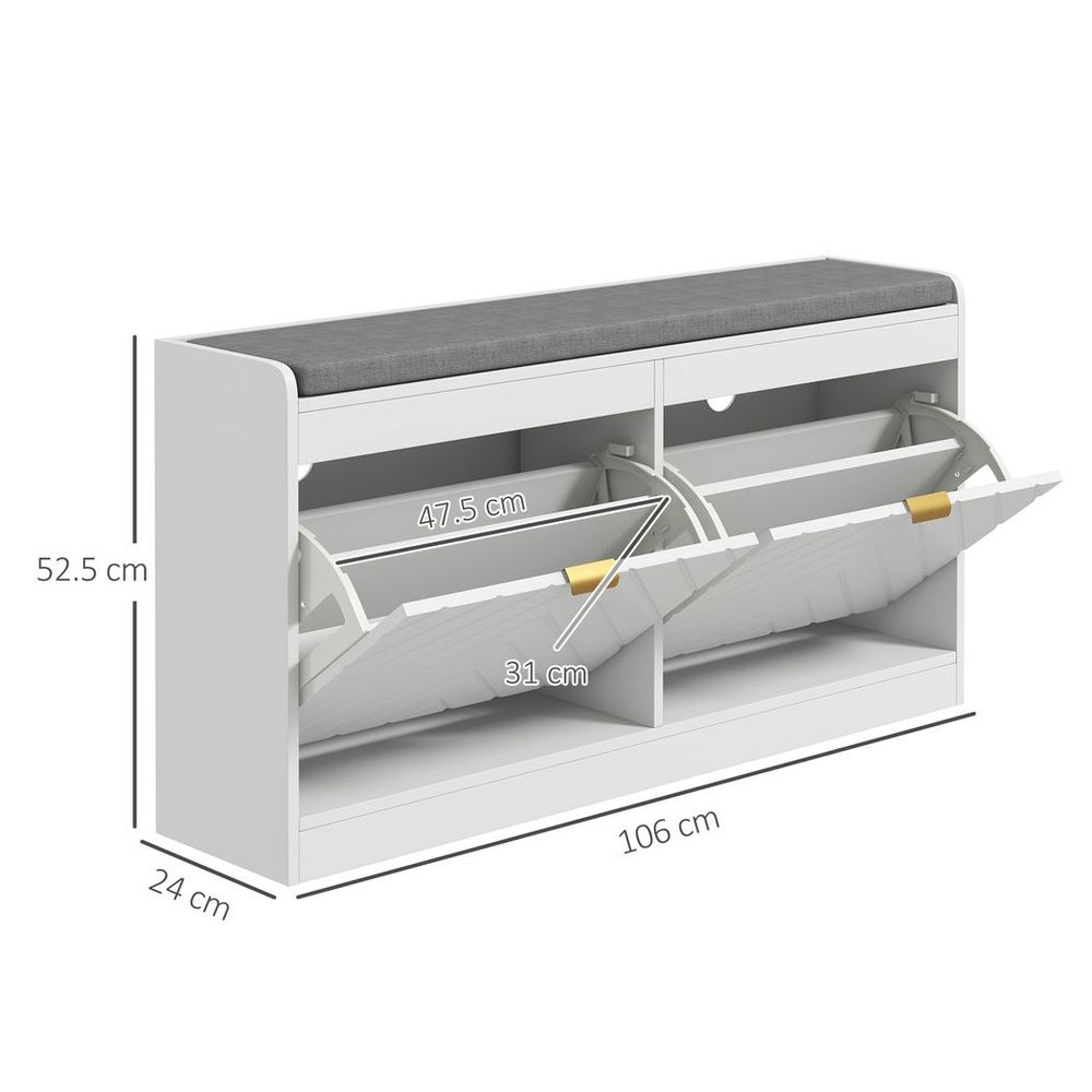 HOMCOM Shoe Bench with 2 Flip Drawers, Cushion, 8 Pairs for Entryway White