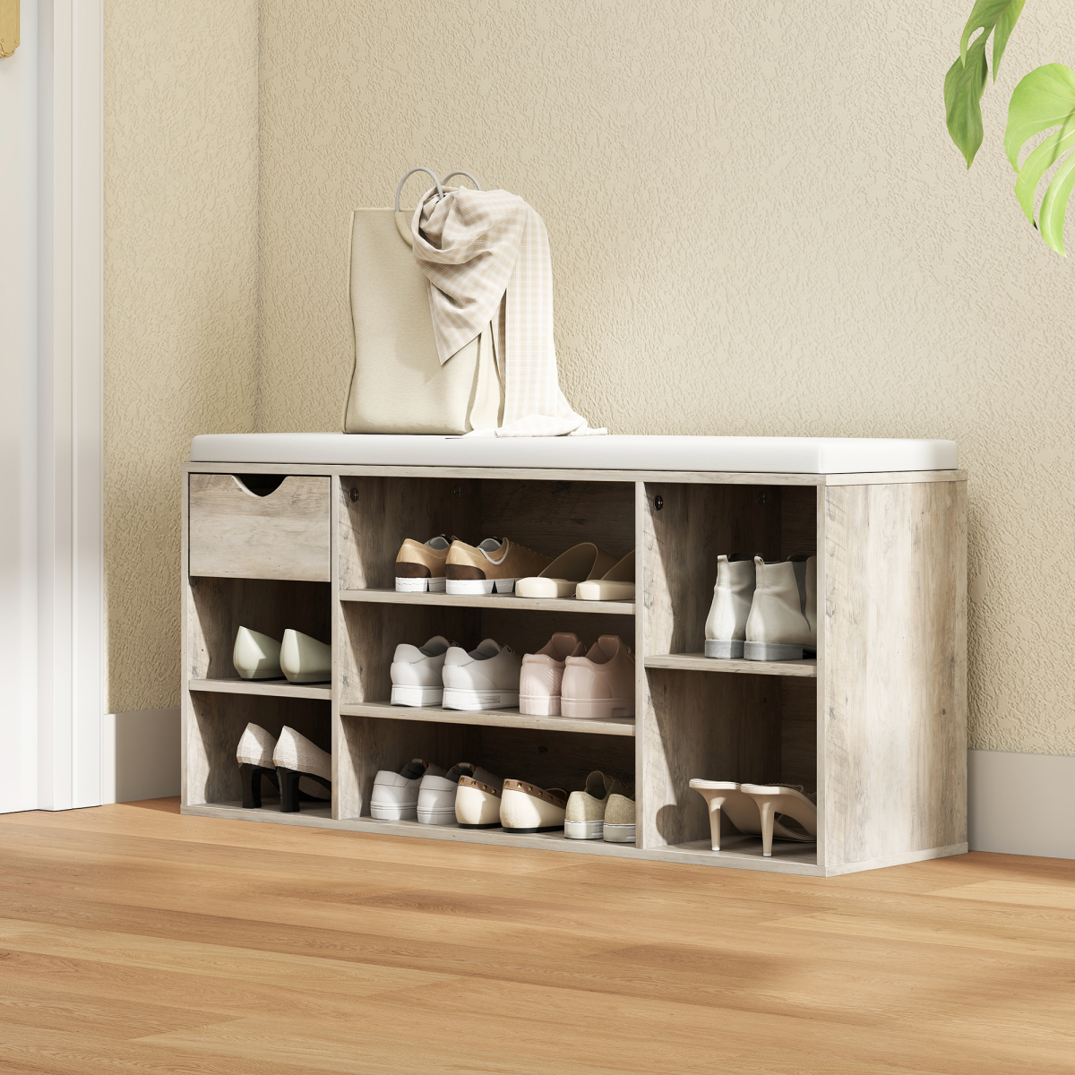 HOMCOM Shoe Storage Cabinet Bench w/ Cushion Adjustable Shelves