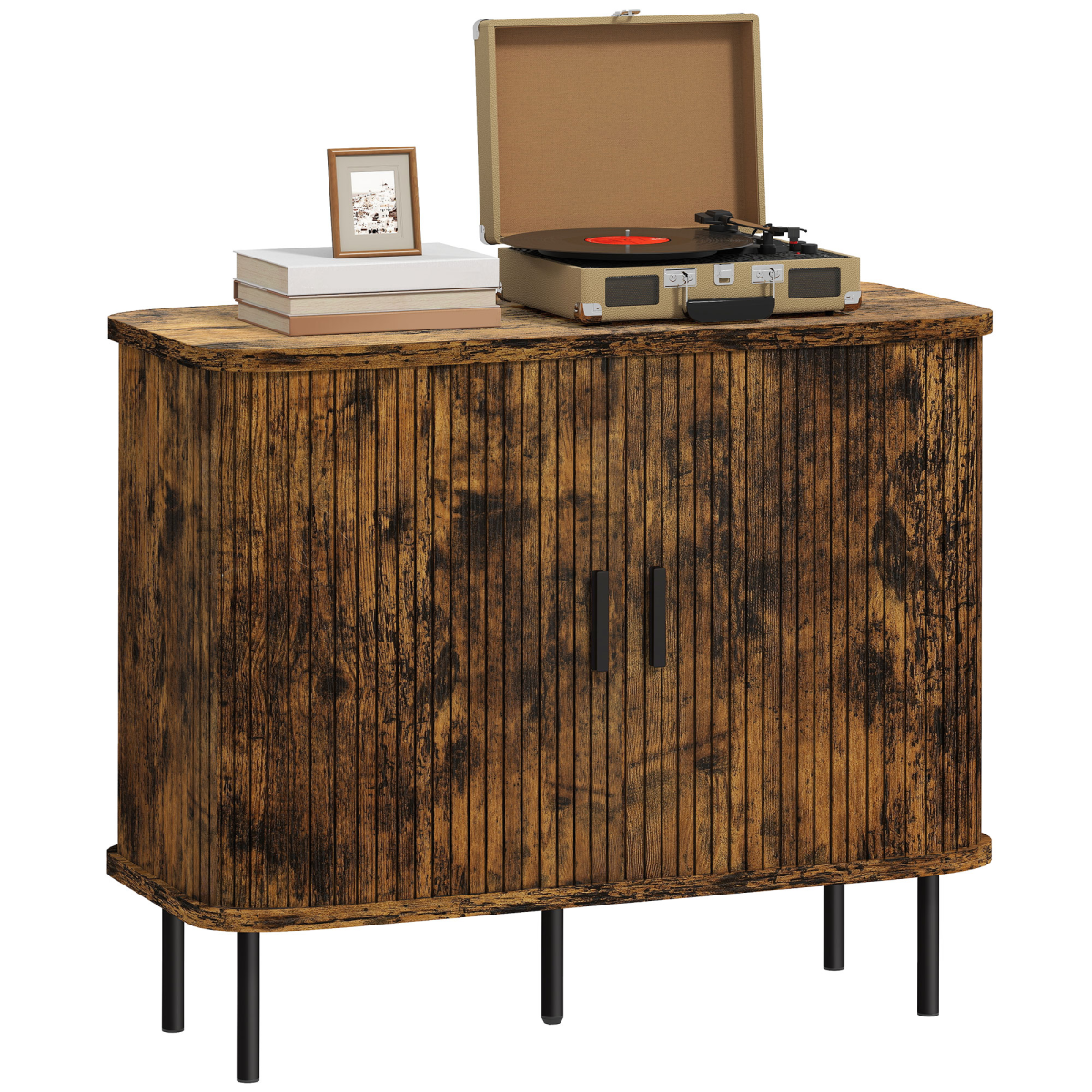 HOMCOM Sideboard Storage Cabinet with Slatted Tambour Sliding Doors Grey