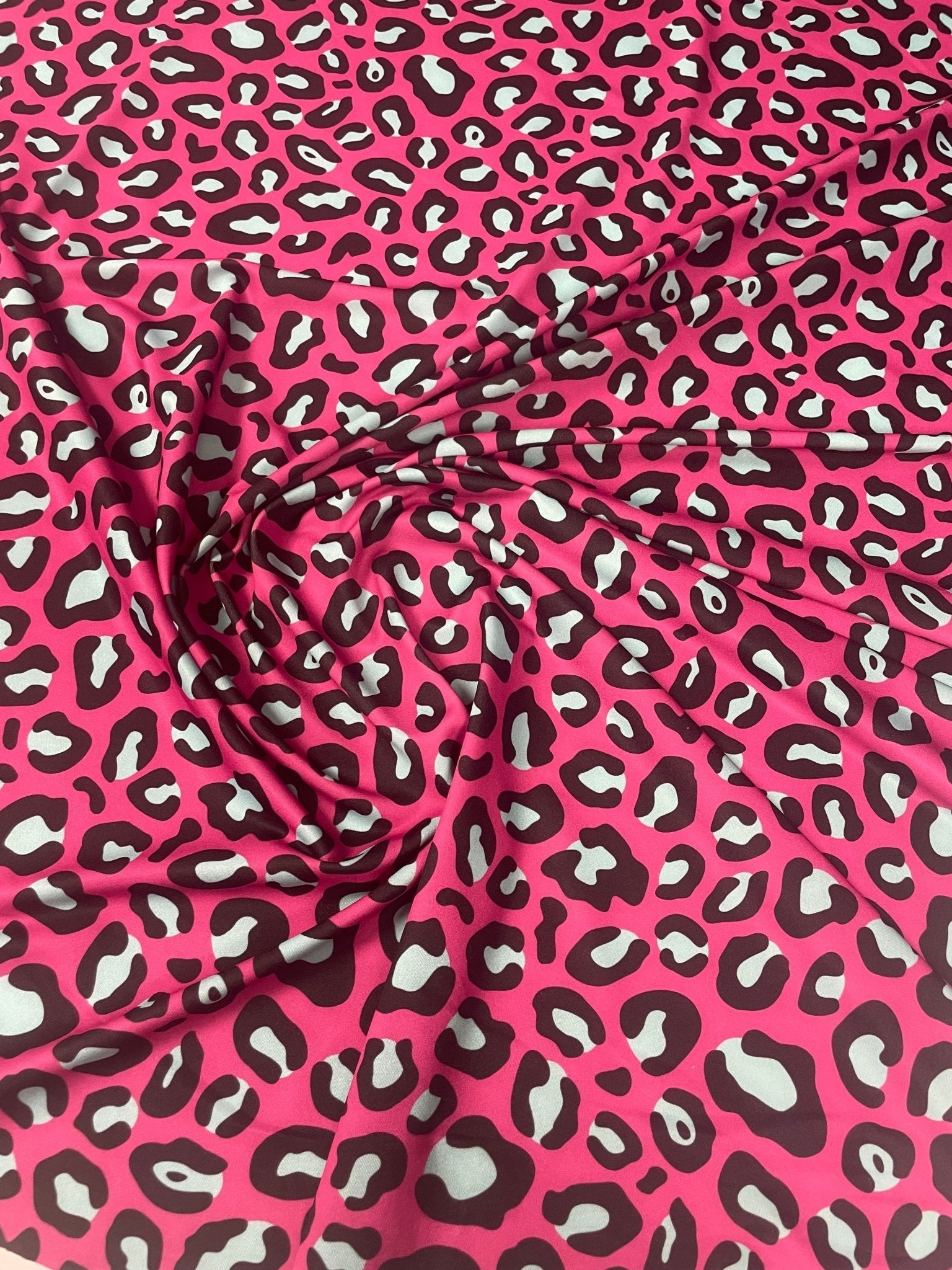 Hot Pink Leopard Print Spandex Fabric – Bold Animal Pattern by Metre